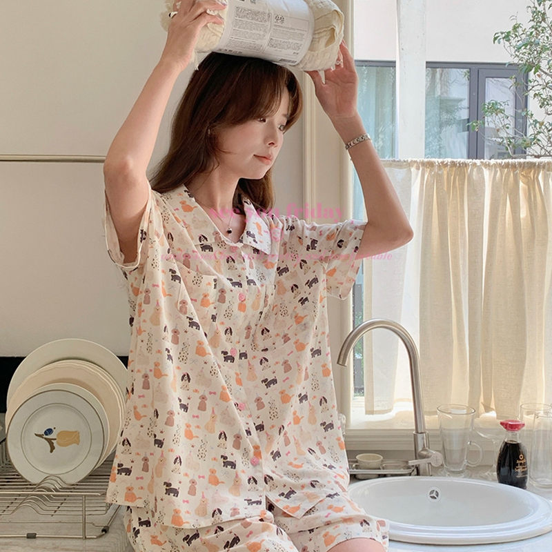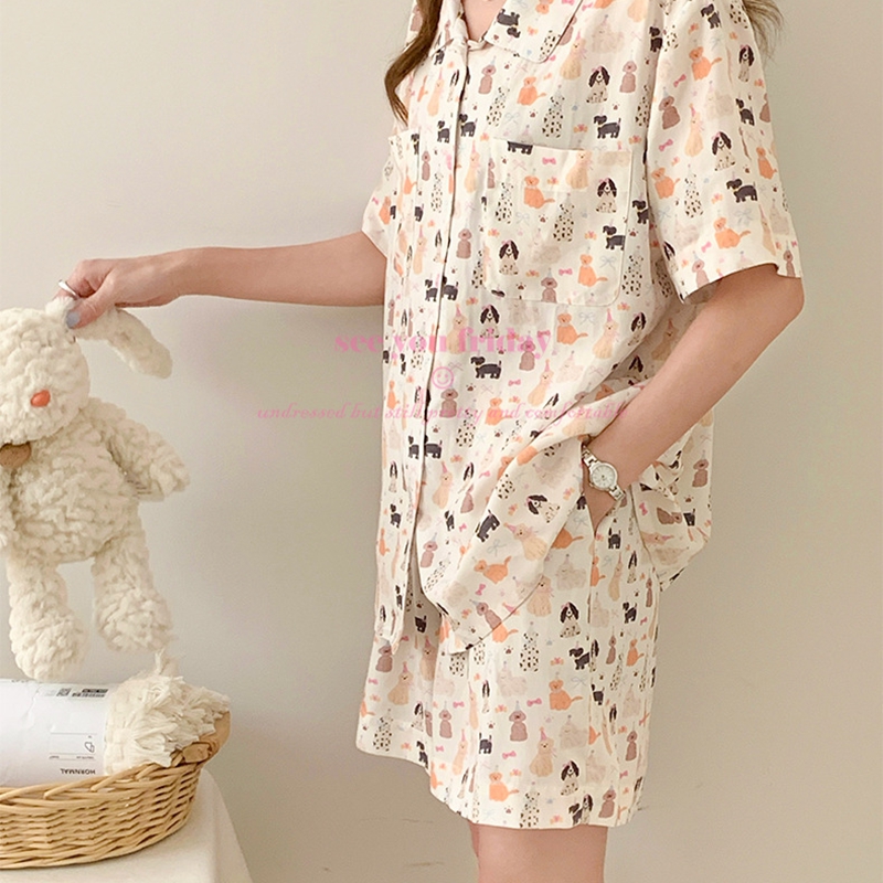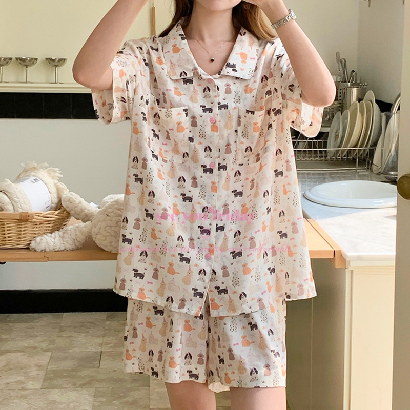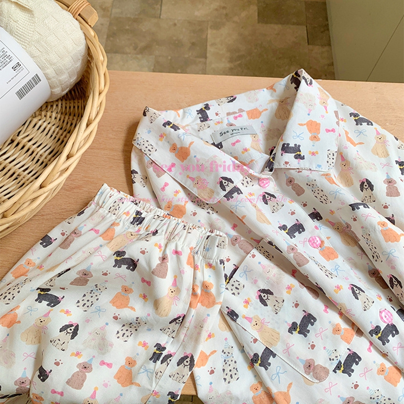 当前位置: 91家纺网 > 商品网购 > 居家日用 > 睡衣/家居服套装 > (总)妍景家居生活馆 2025新款韩系满印狗狗家族套装