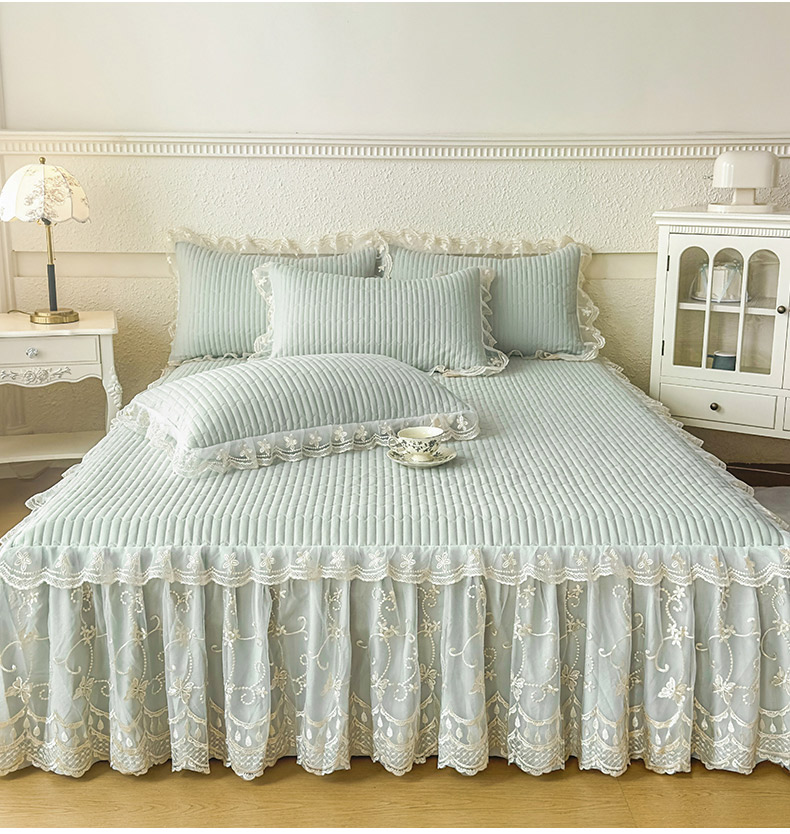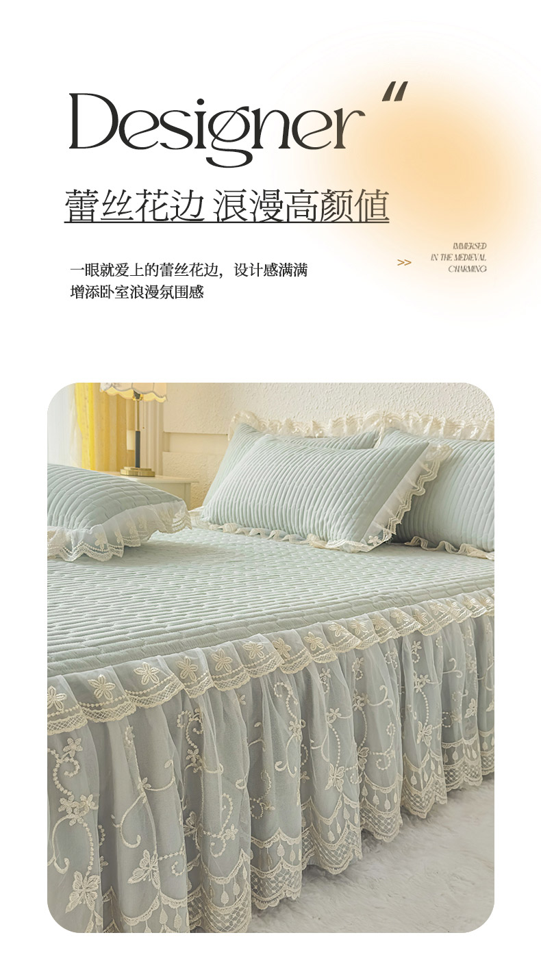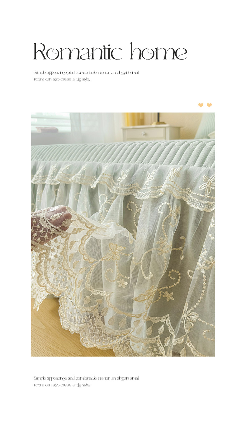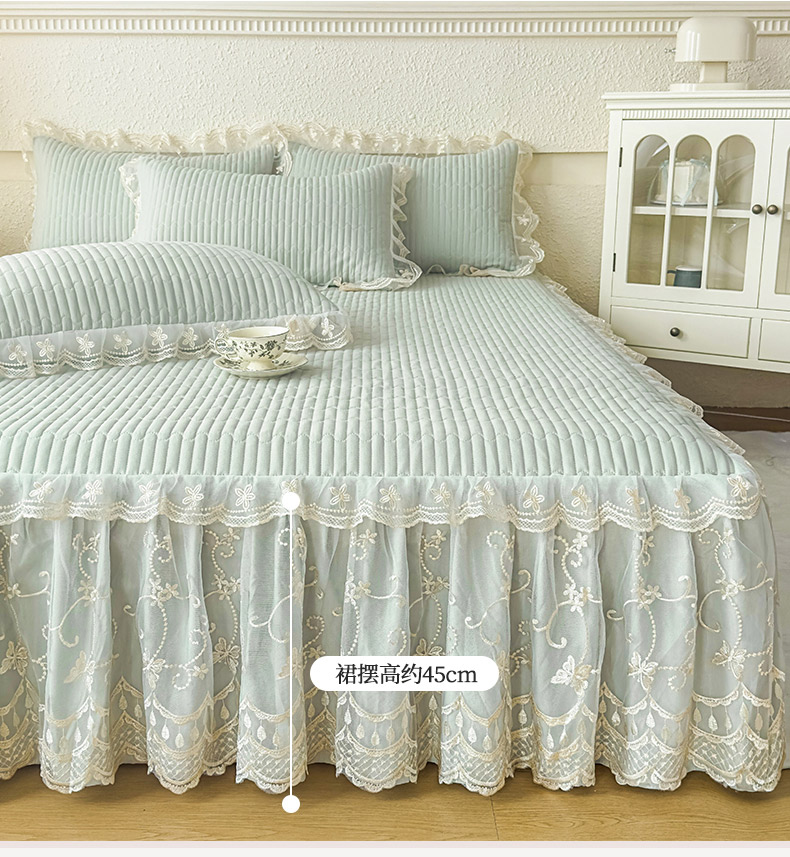 • 91家纺网 家纺一手货源 找家纺 予梦家纺 2025新款夹棉床裙单床裙单品床裙单件床裙-花影 花影-清新绿
