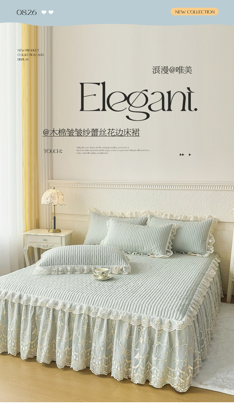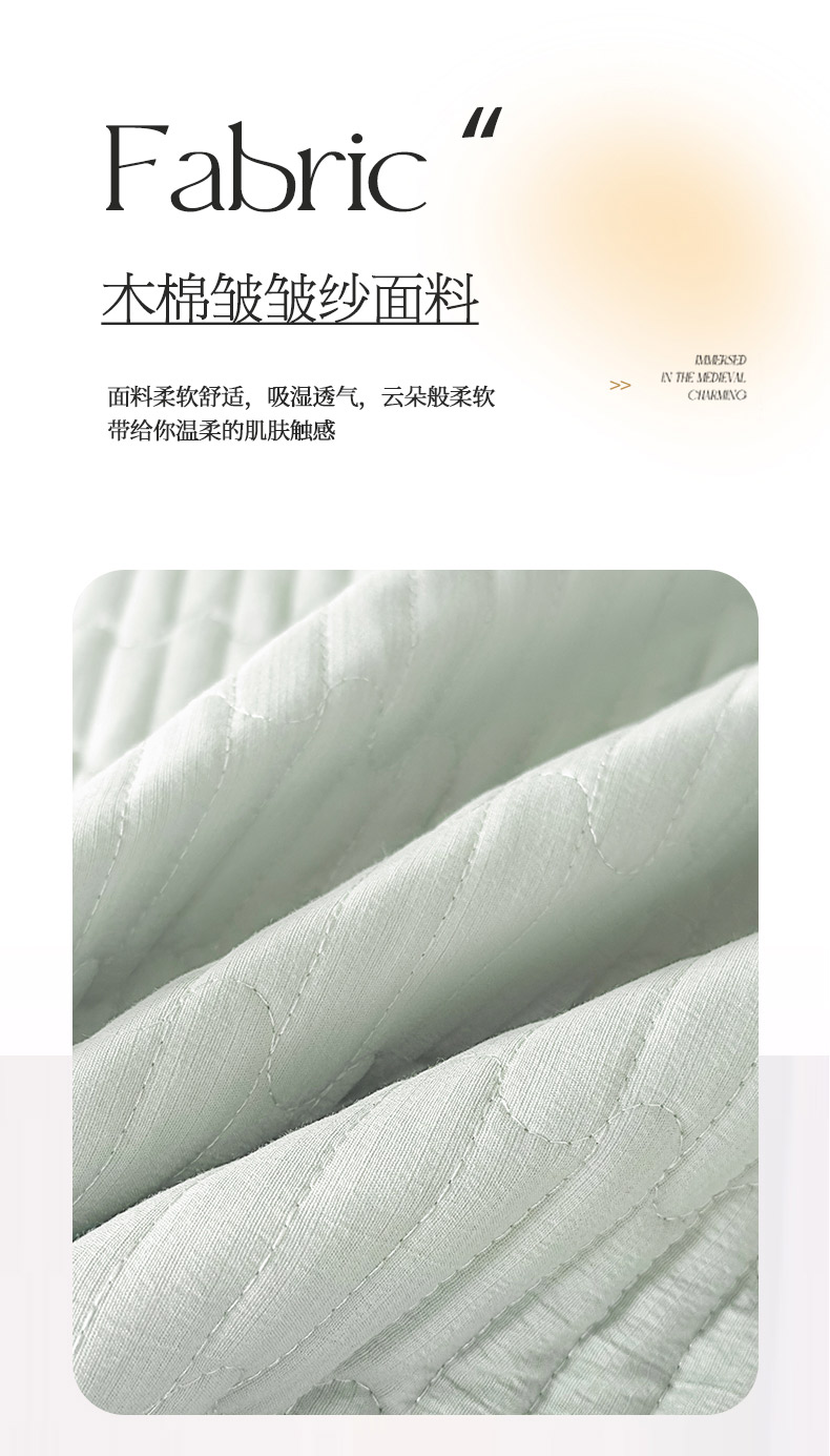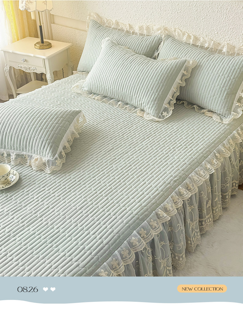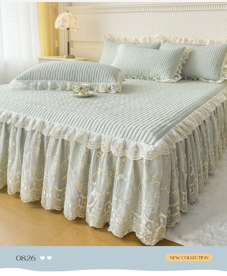 • 91家纺网 家纺一手货源 找家纺 予梦家纺 2025新款夹棉床裙单床裙单品床裙单件床裙-花影 花影-清新绿