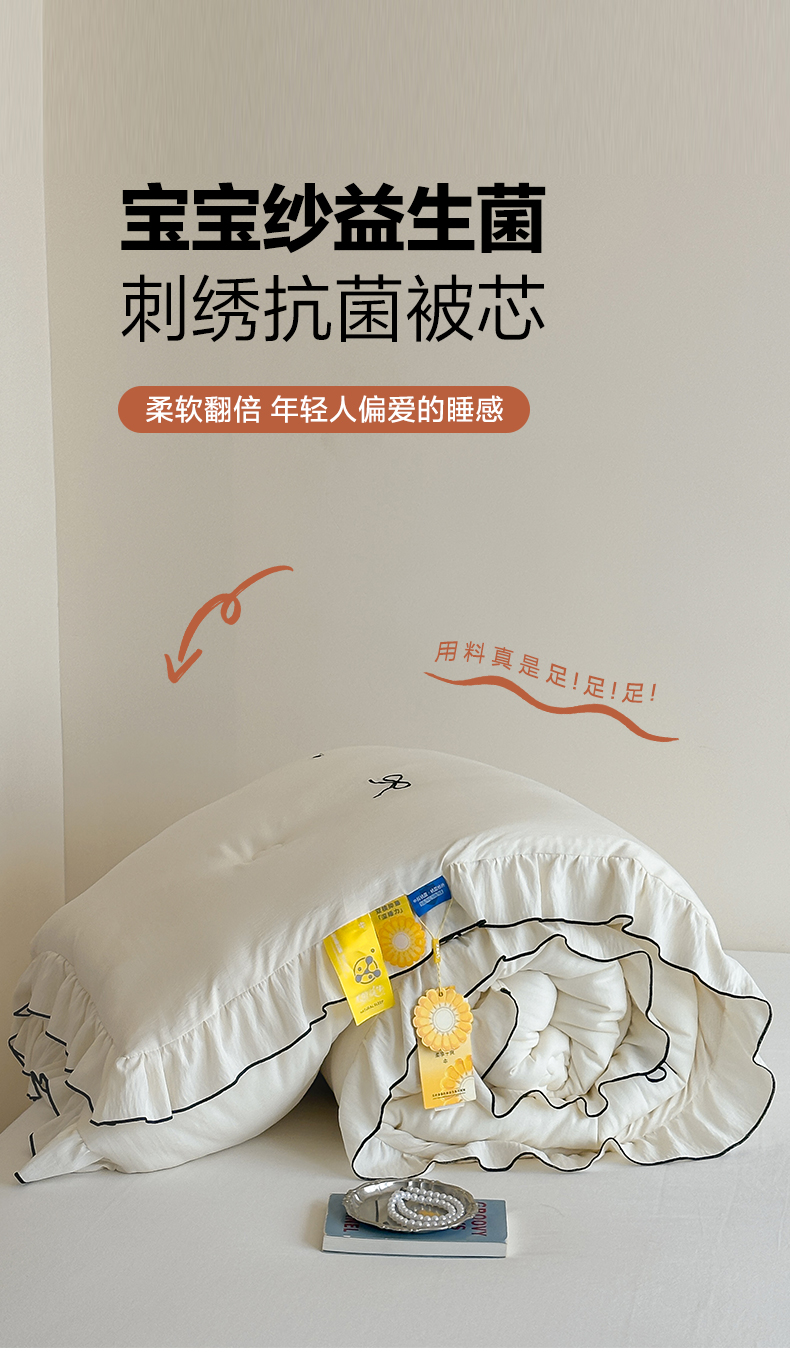• 91家纺网 家纺一手货源 找家纺 一加一 2025新款宝宝纱益生菌刺绣抗菌被子被芯 甜心蝶语