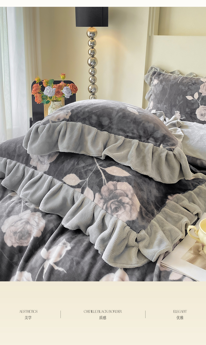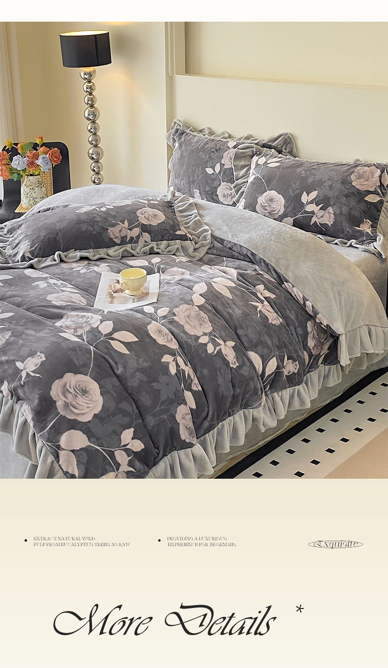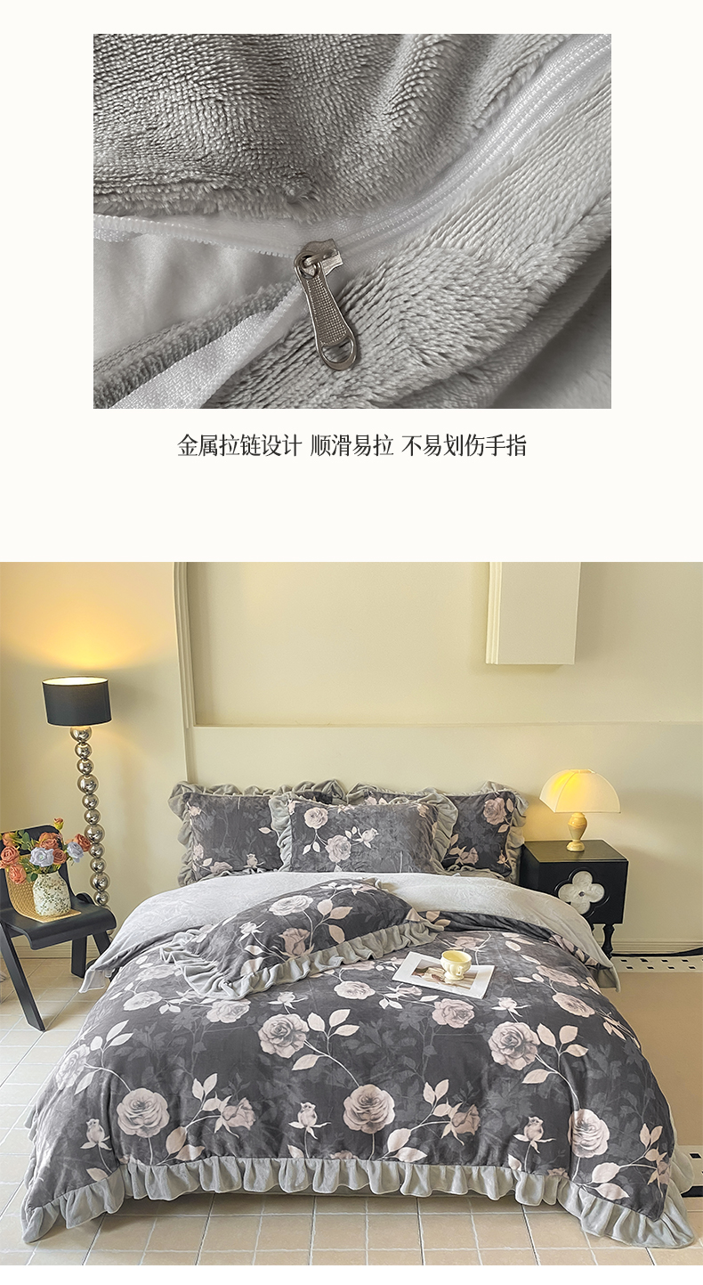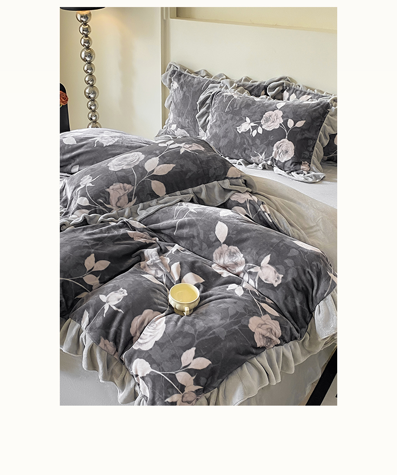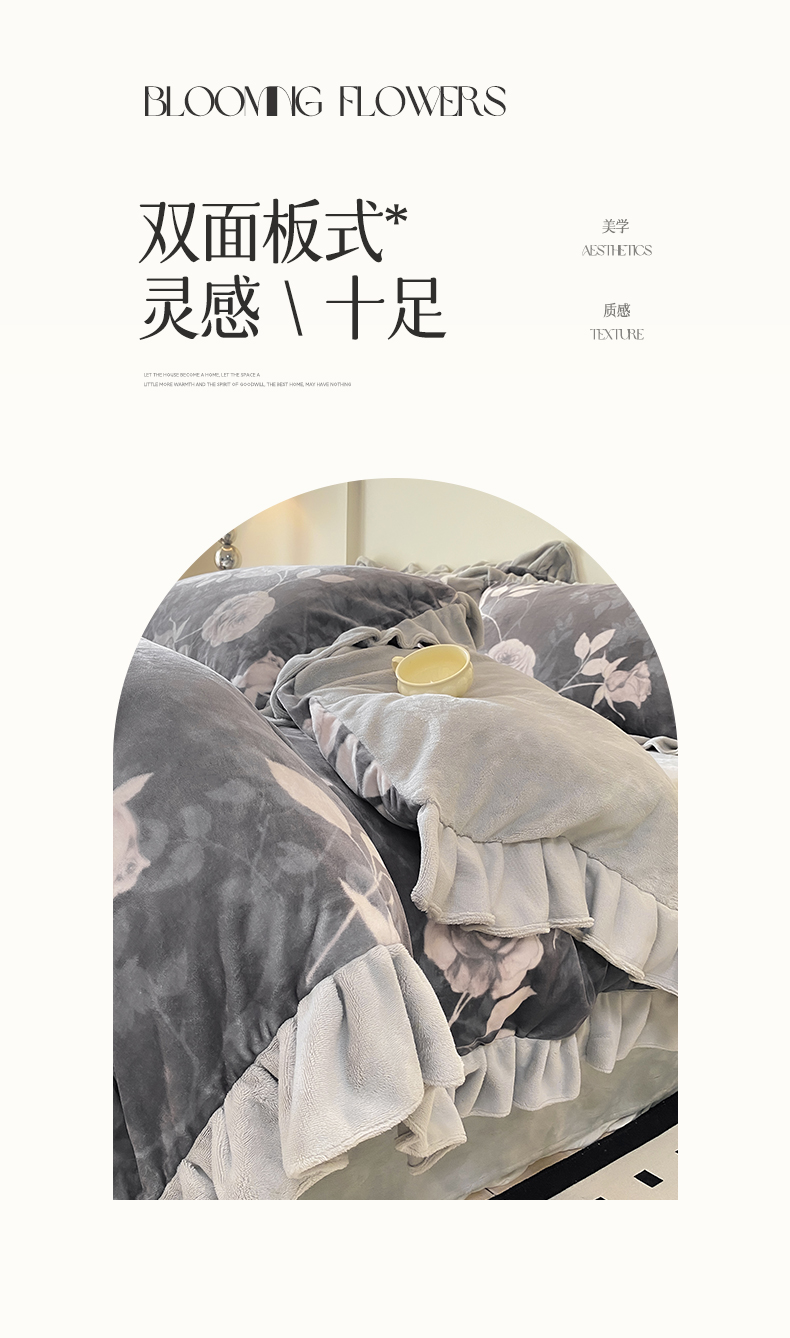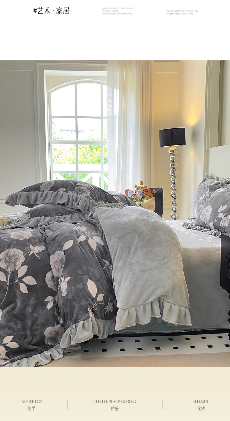当前位置: 91家纺网 > 商品网购 > 床品套件 > 四件套 > 牛奶绒四件套 > 慕希家纺 2025新款高克重牛奶绒花边款四件套 玫瑰之吻-米