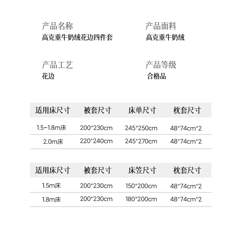 【床笠款】1.8四件套-被套200x230 | ¥90.00 |