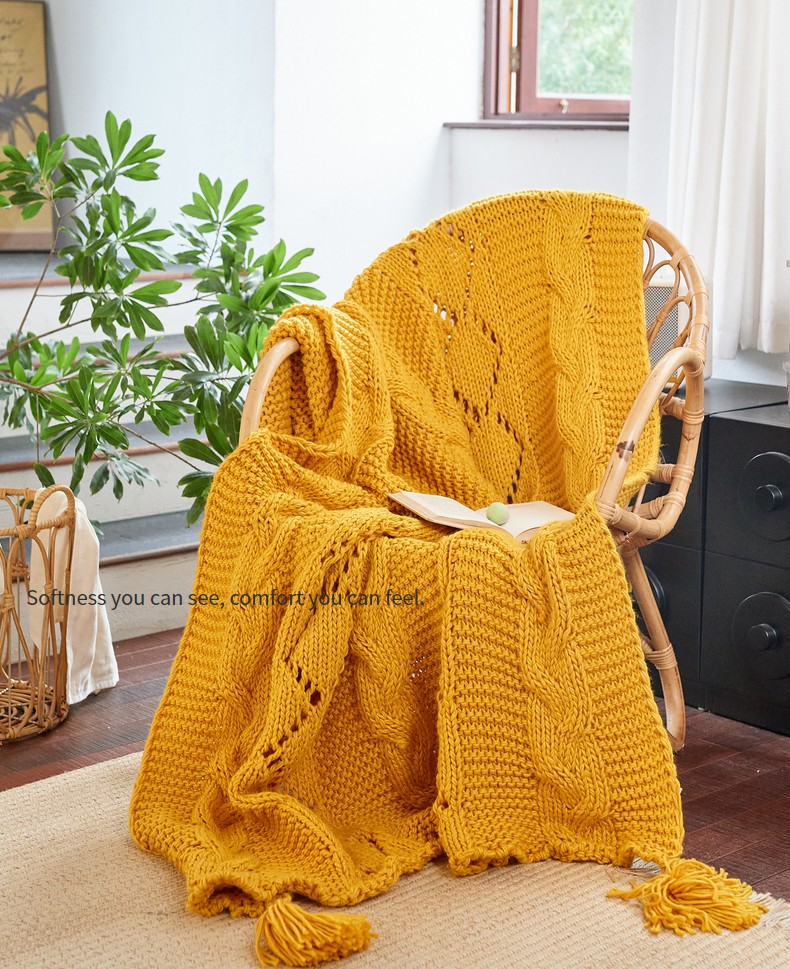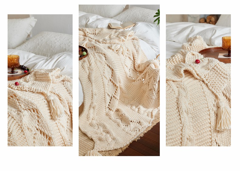 (总)暖绵绵家纺 2026新款几何编制温柔米色流苏针织毯-艾岚珍(本款券后/折后零售价不得低于330元),艾岚珍