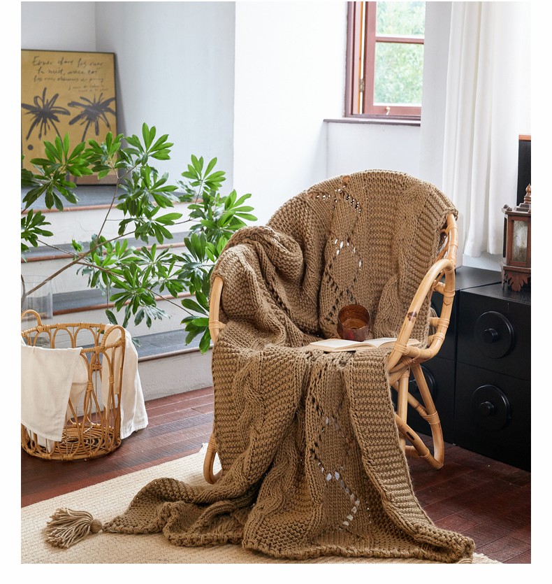 暖绵绵家纺 2025新款温柔编制感腈纶针织毯-霍恩 霍恩-卡其