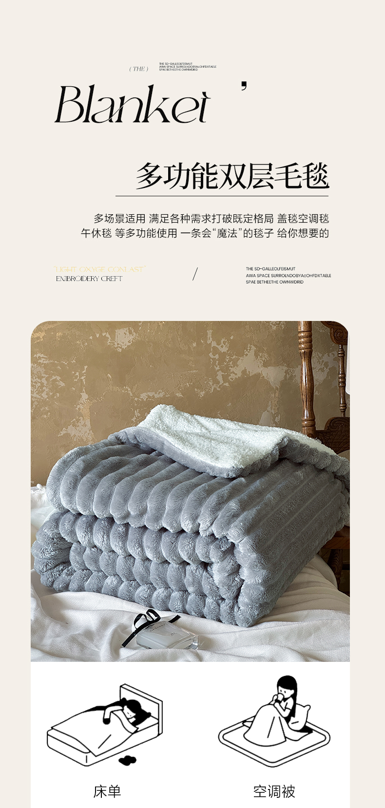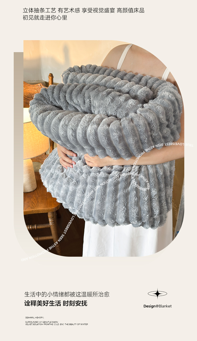 当前位置: 91家纺网 > 商品网购 > 毛毯休闲毯绒毯 > 毛毯 > 艾咪-Amy ntmy 2025新款立体抽条仿兔绒羊羔绒双层毯子 双层毯-绒雾蓝