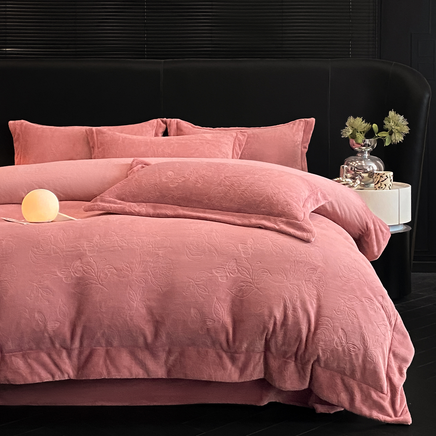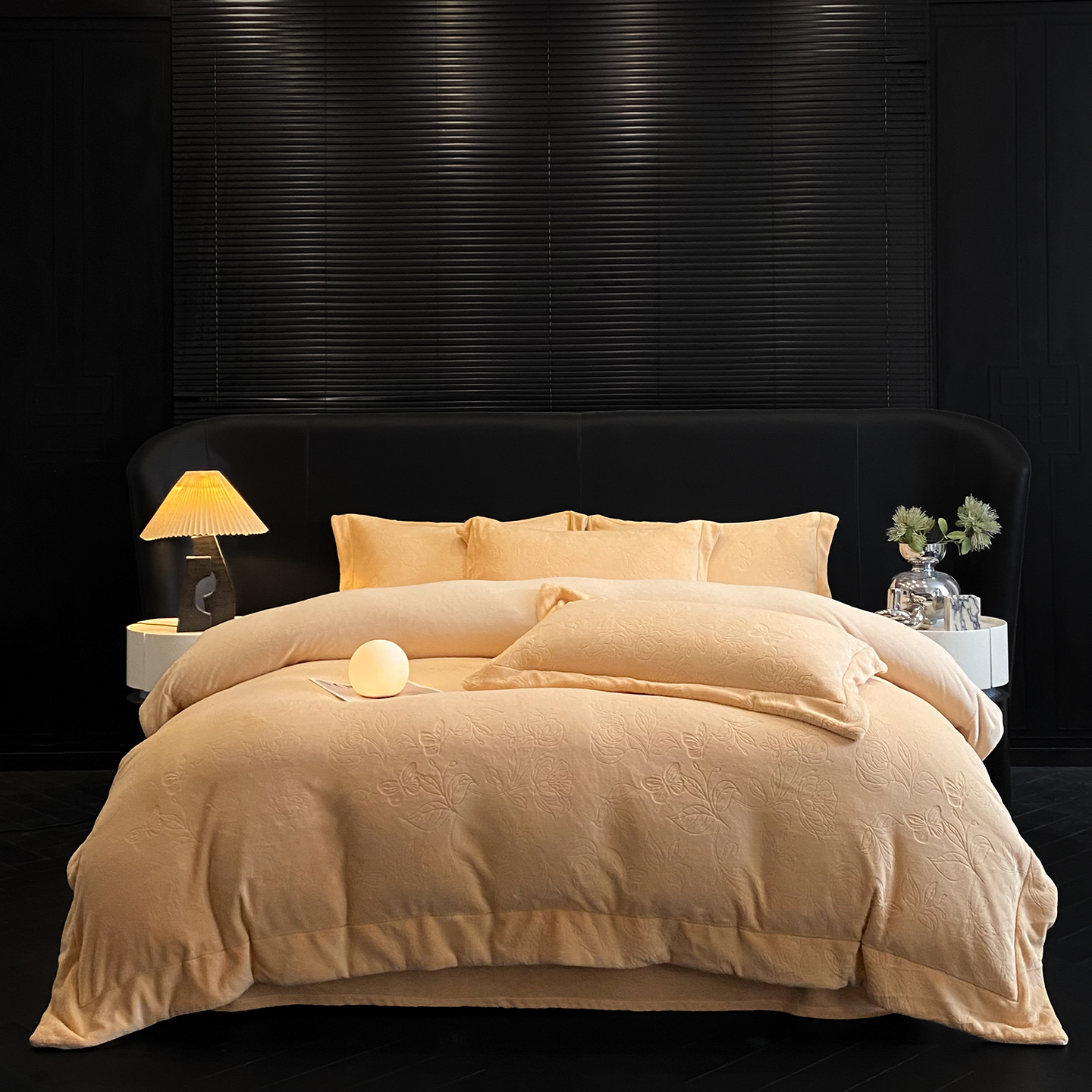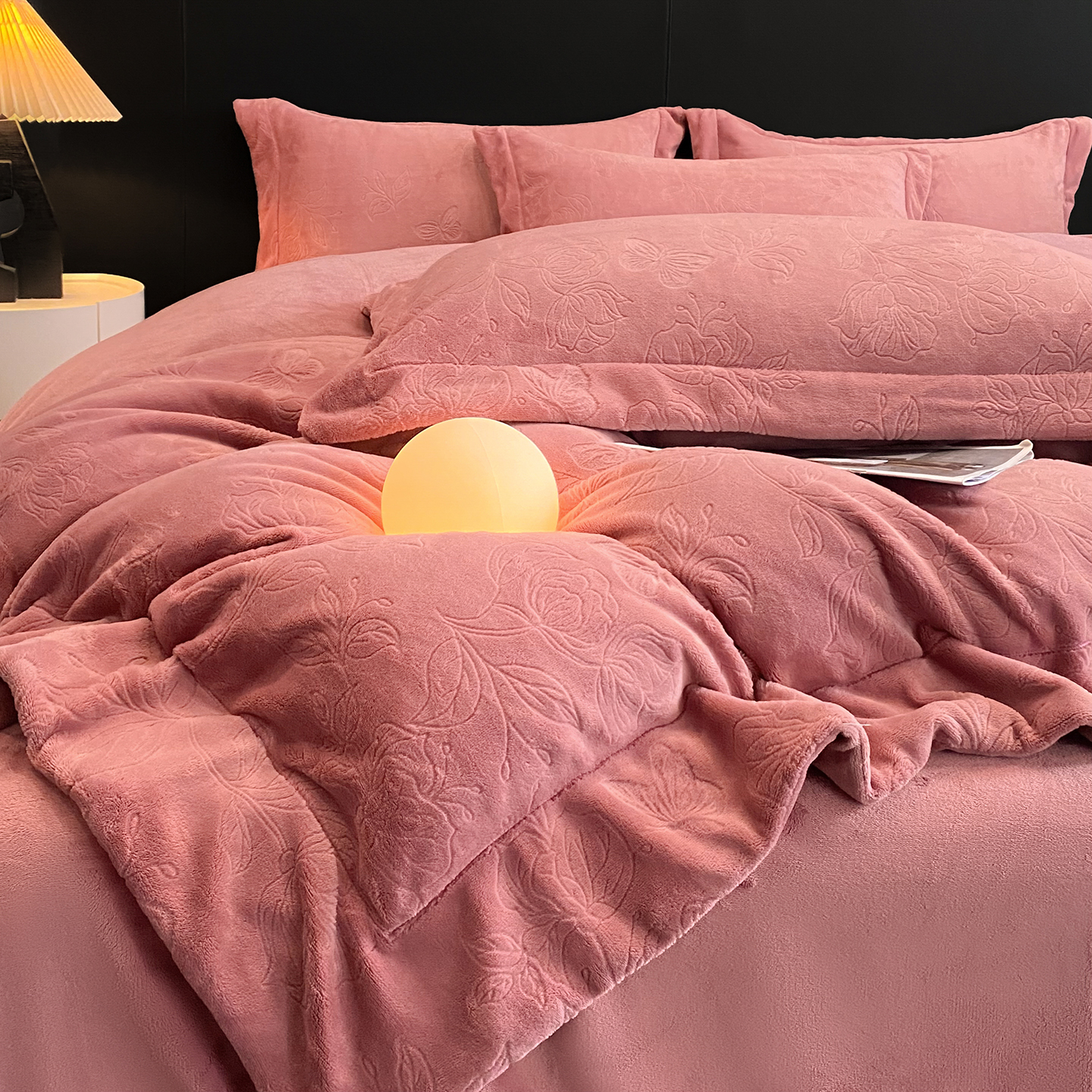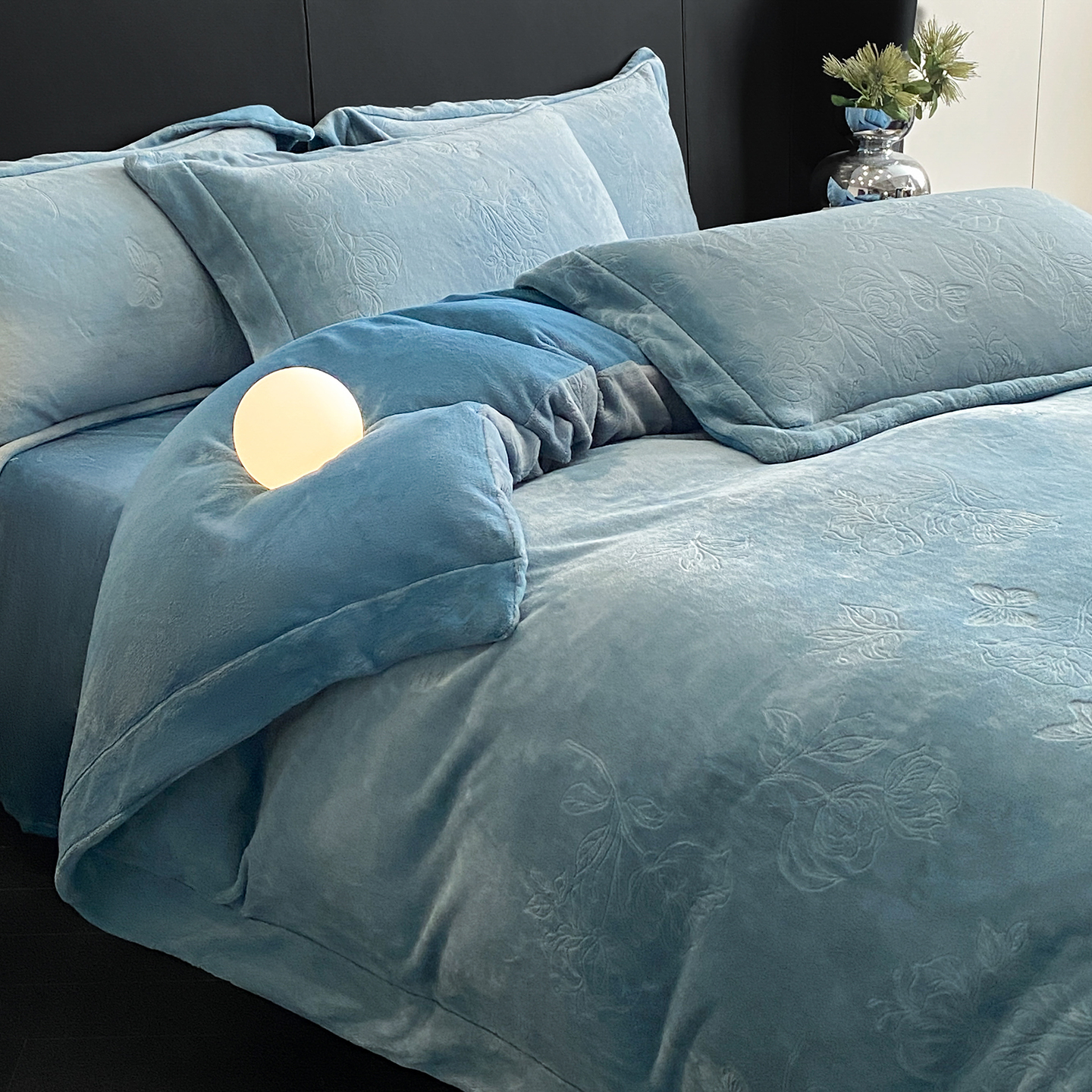 商品名称:(总)控价 专版花型 2025年新款240克9.2斤全消光A类烂花牛奶绒四件套-蝴蝶戏花