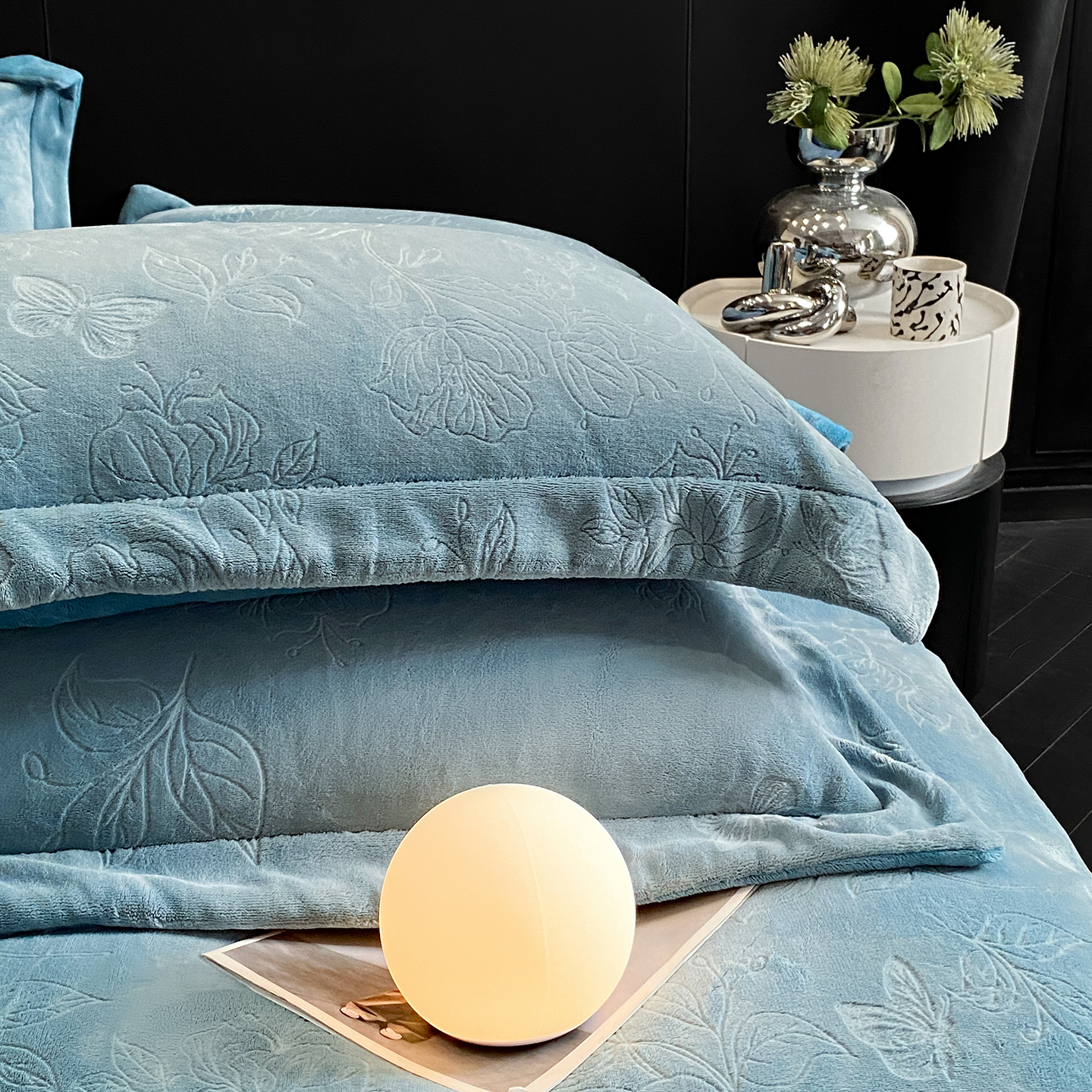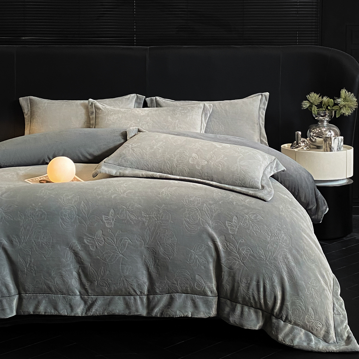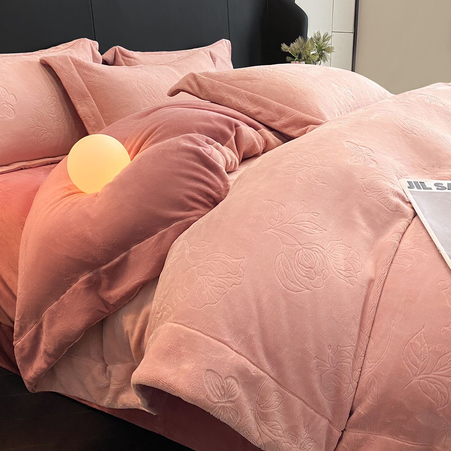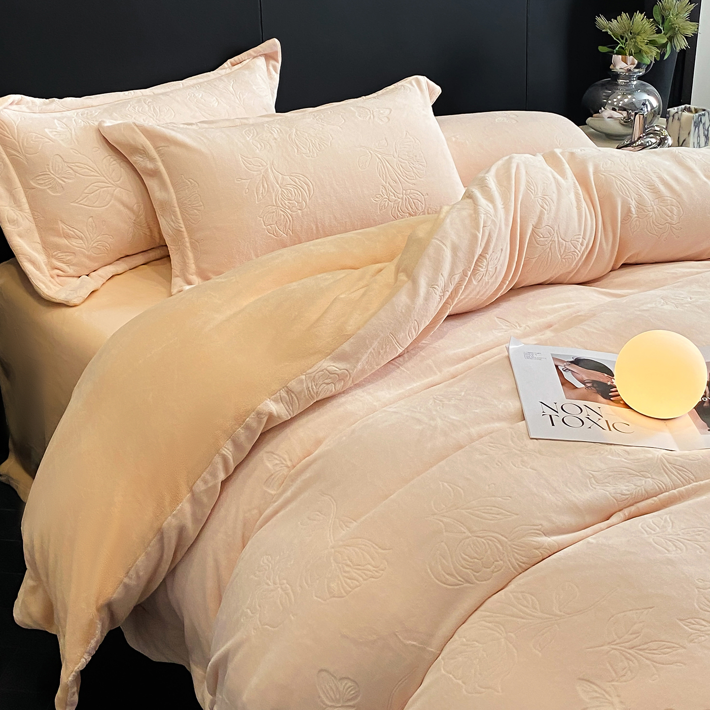 商品名称:(总)控价 专版花型 2025年新款240克9.2斤全消光A类烂花牛奶绒四件套-蝴蝶戏花