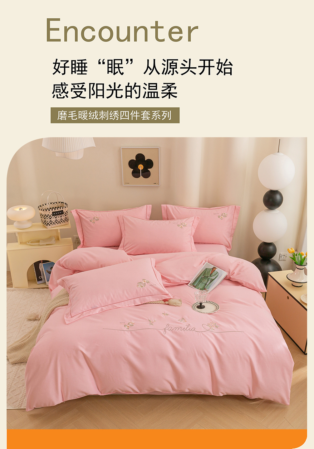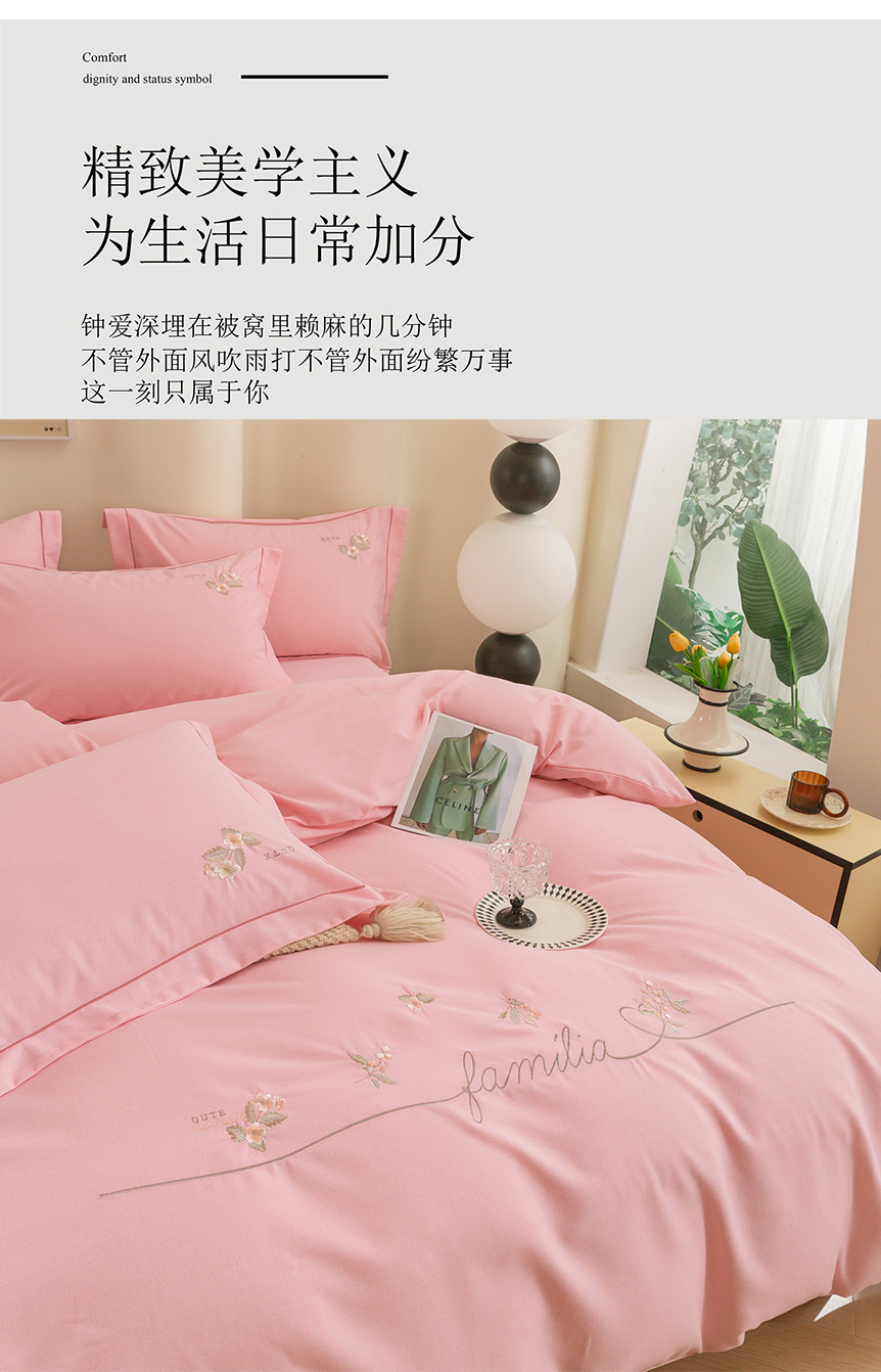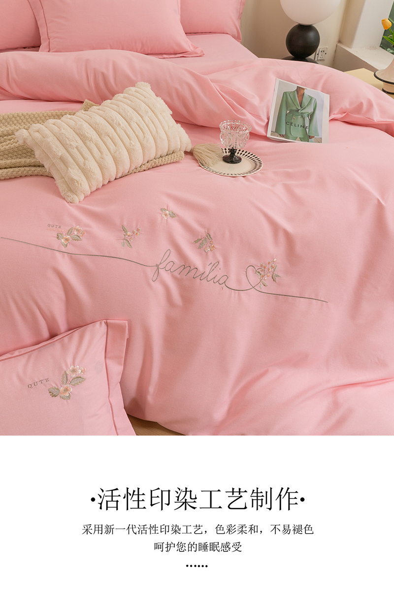 (总)绒博士 2025新款270克牛奶绒双拼角刺绣宽边款四件套--维也纳系列,维也纳-粉豆沙,维也纳-果绿,维也纳-浅咖,维也纳-浅蓝