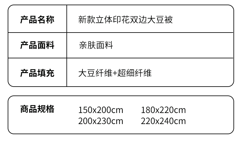 180x220cm冬被4斤 | ¥50.00 |