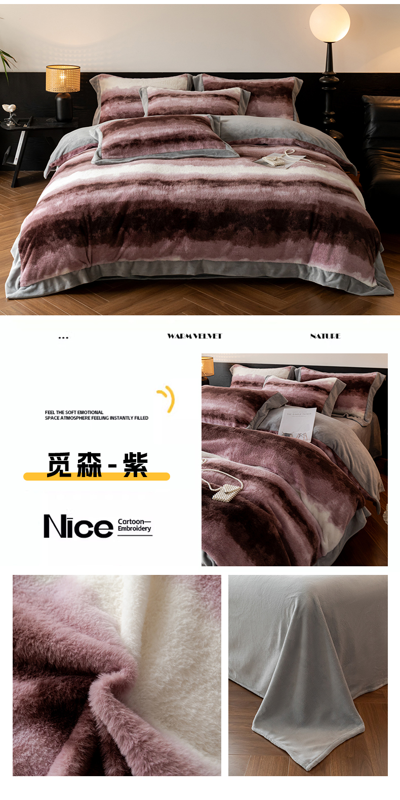 商品名称:启程家纺 2025新款A类加厚兔毛220克牛奶绒拼角四件套 赫本