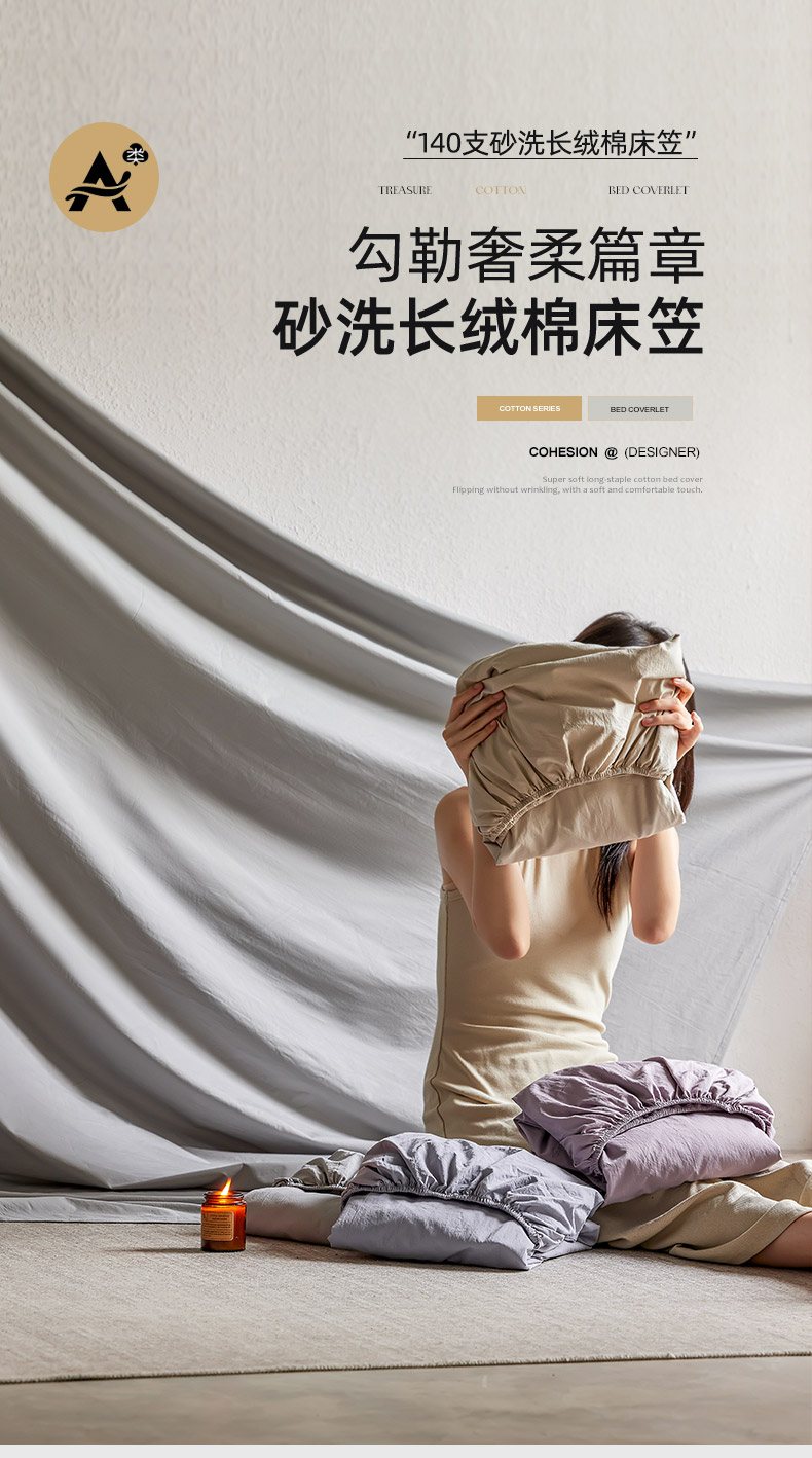 • 91家纺网 家纺一手货源 找家纺 轩和家居 2025新款70S砂洗长绒棉单床笠 烟凝