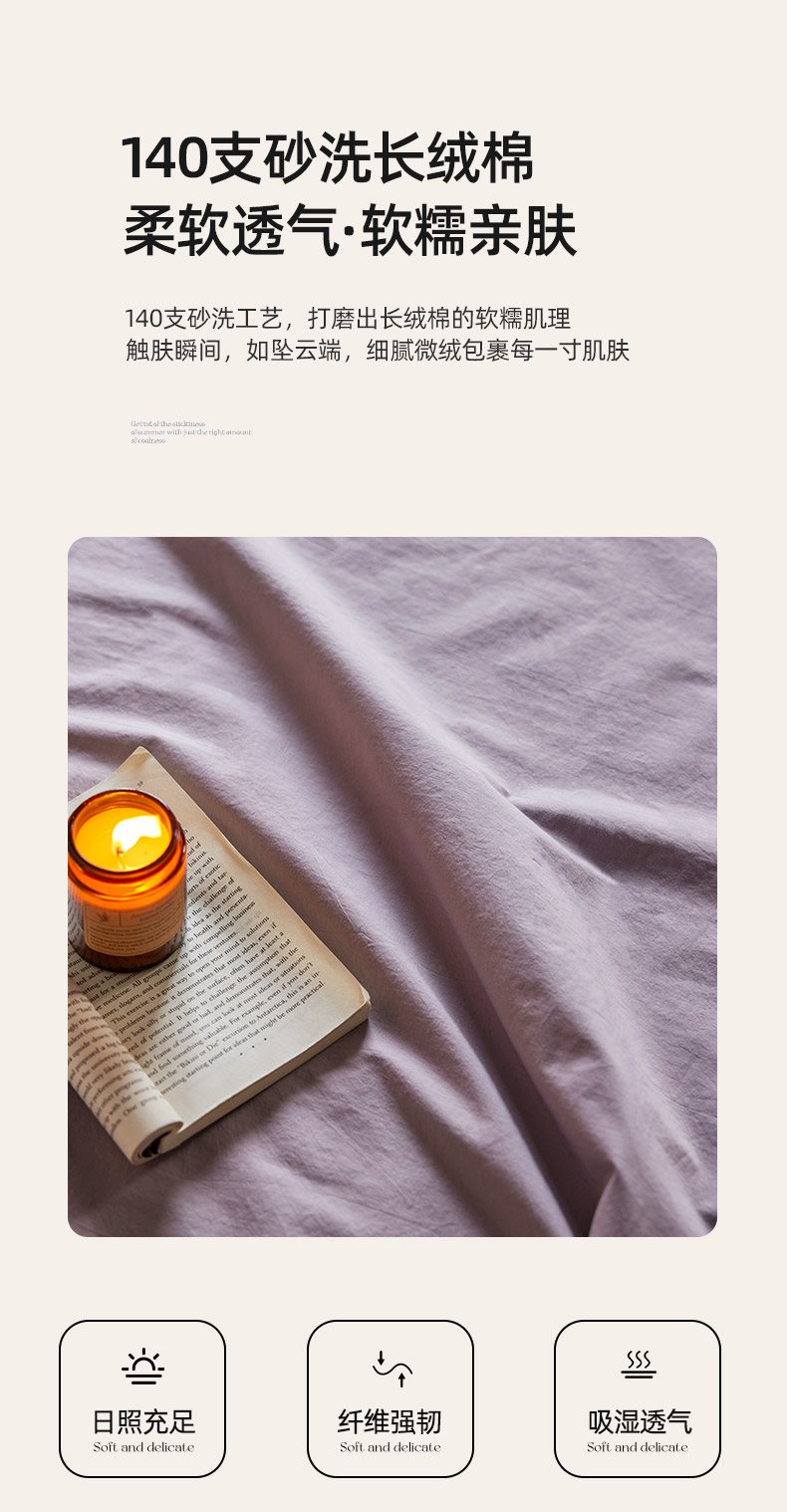 (总)轩和家居 2025新款全棉高支旧感砂洗长绒棉单被套,组合,薄樱粉,淡黄色,豆沙色,霁兰色,落栗棕,墨染灰,暮烟灰,浅云白,青绿色,秋麦色,松石绿,天空蓝,雾海蓝,细雨灰