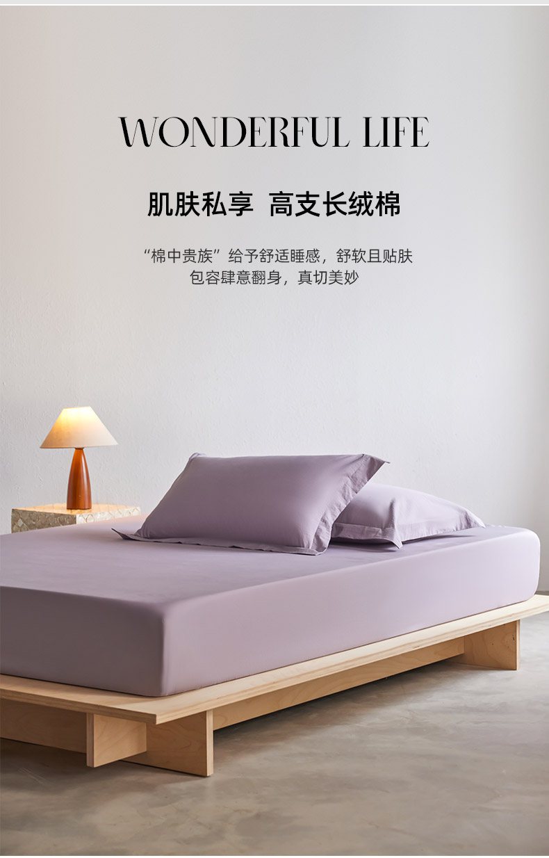 轩和家居 2025新款70S砂洗长绒棉单床笠 烟凝