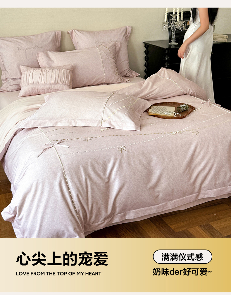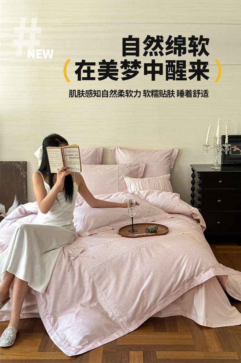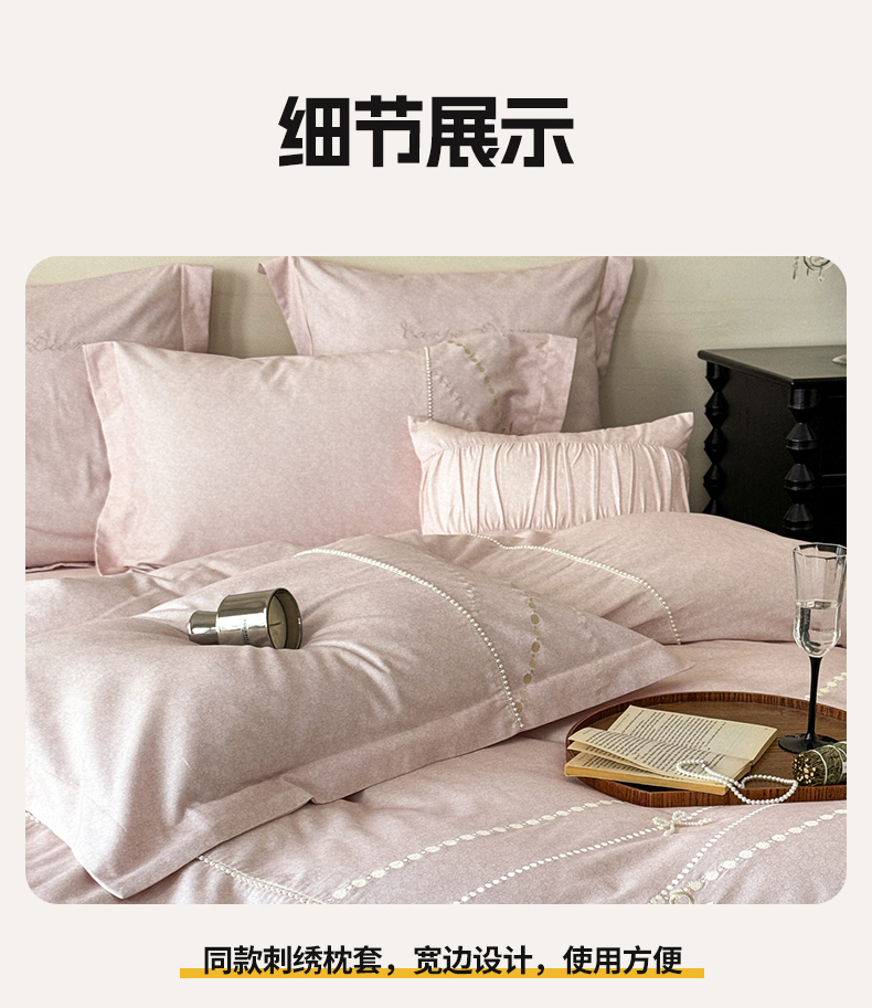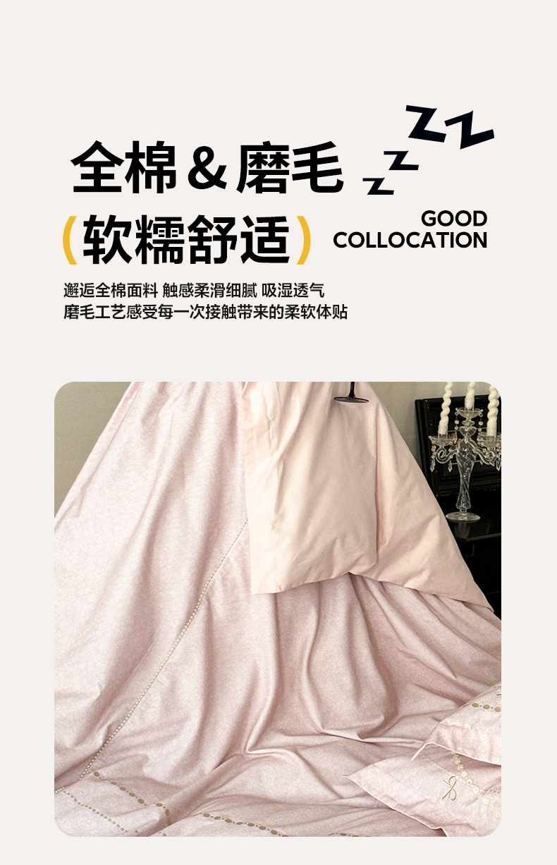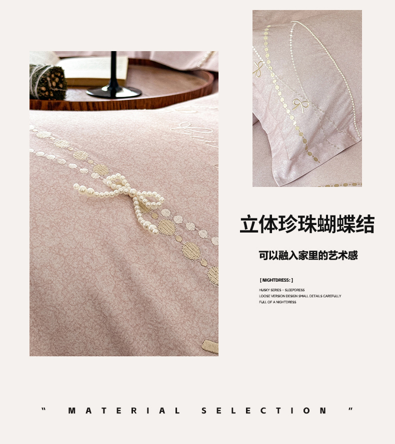 商品名称:红番天家居馆 (控价)2025新款全棉云柔棉磨毛+磨毛肌理纹+工艺款四件套-珠光(每款供货价的基础上一切活动券后+100) 珠光-盈盈