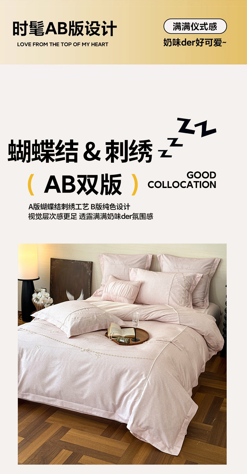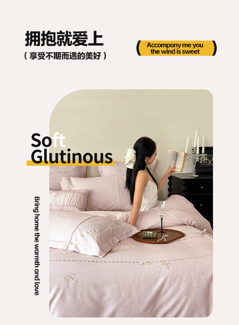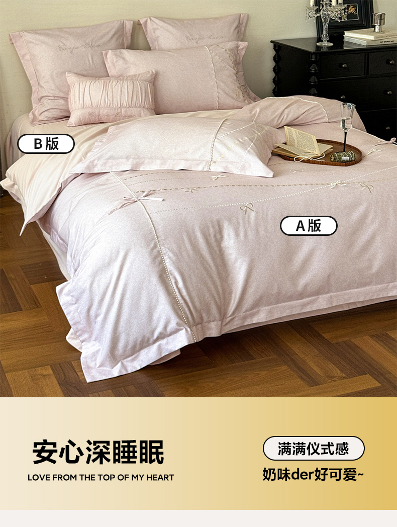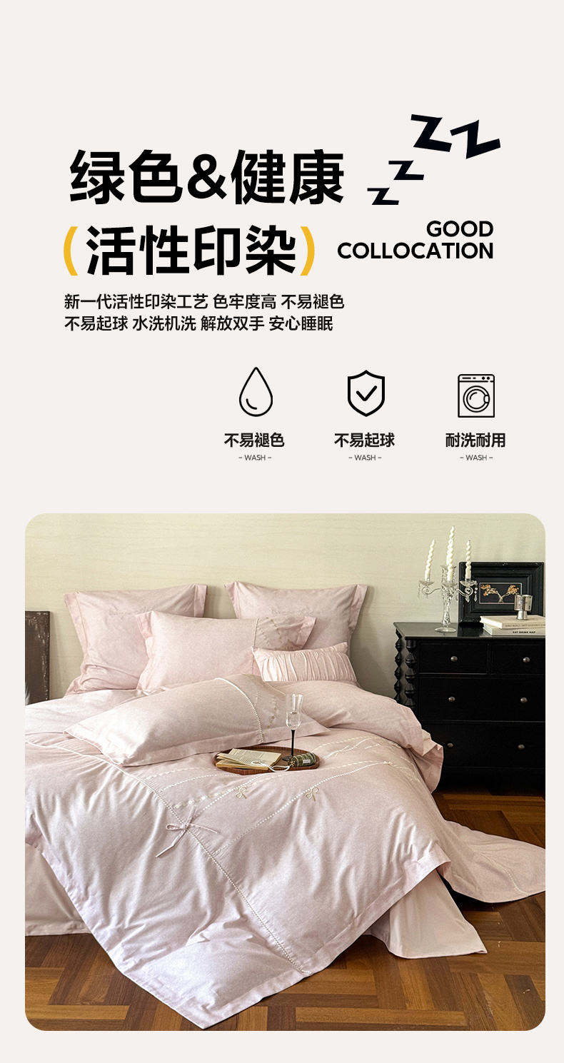 商品名称:红番天家居馆 (控价)2025新款全棉云柔棉磨毛+磨毛肌理纹+工艺款四件套-珠光(每款供货价的基础上一切活动券后+100) 珠光-盈盈