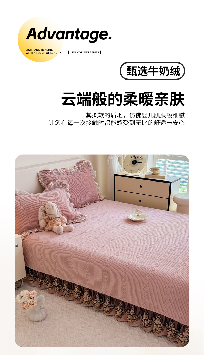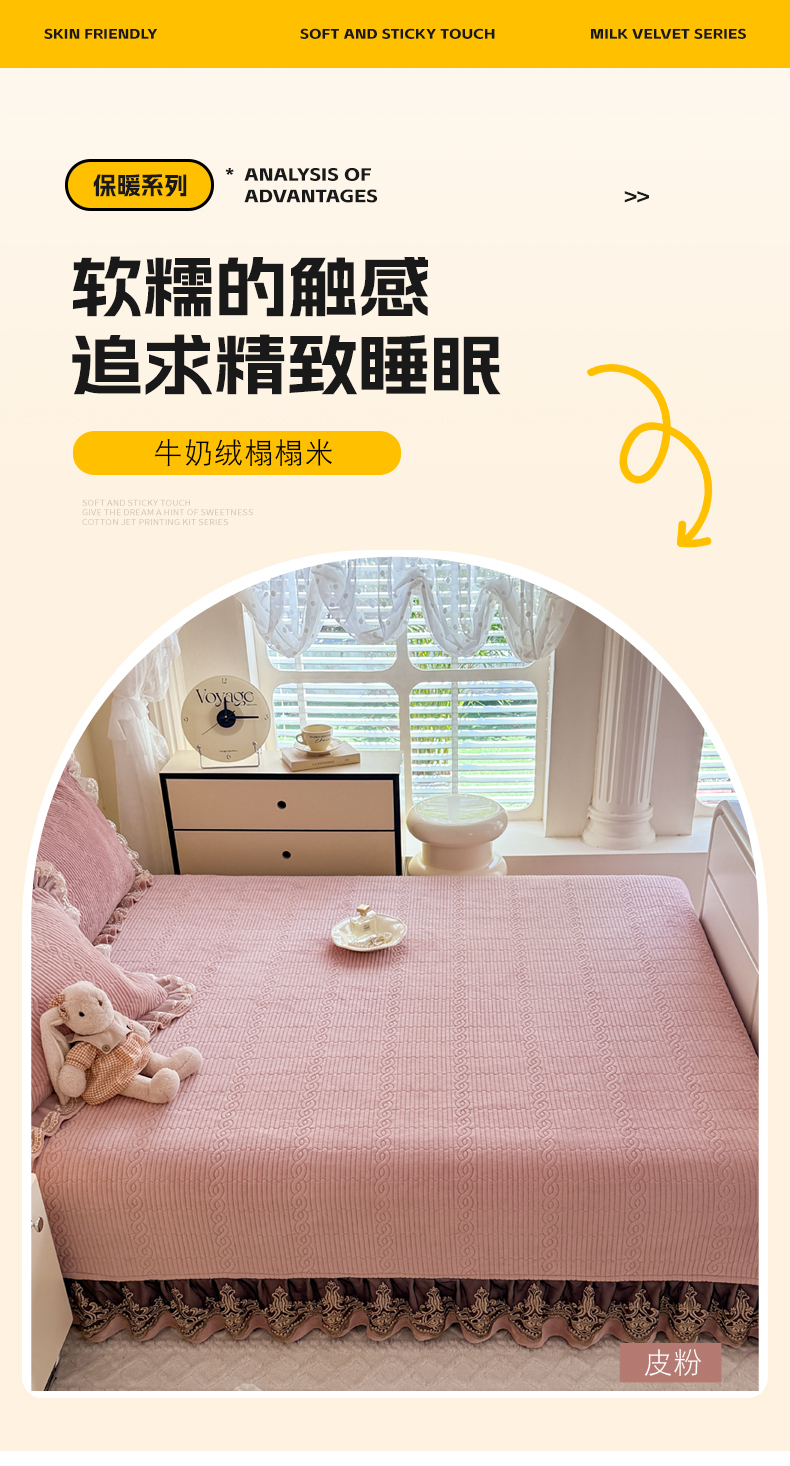 商品名称:美达家纺 2025新款牛奶绒纯色夹棉榻榻米 牛奶绒榻榻米-皮粉