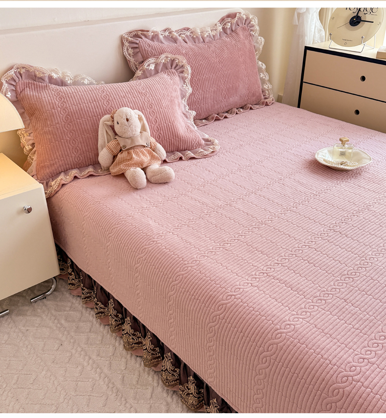 (总)美达家纺 2026新款13372全棉夹棉纯色床裙,玫瑰粉,木槿紫,浅砂灰,豆绿,高贵玉,灰紫,记忆粉,经典灰,魅力驼,米白,浅兰,绅士绿