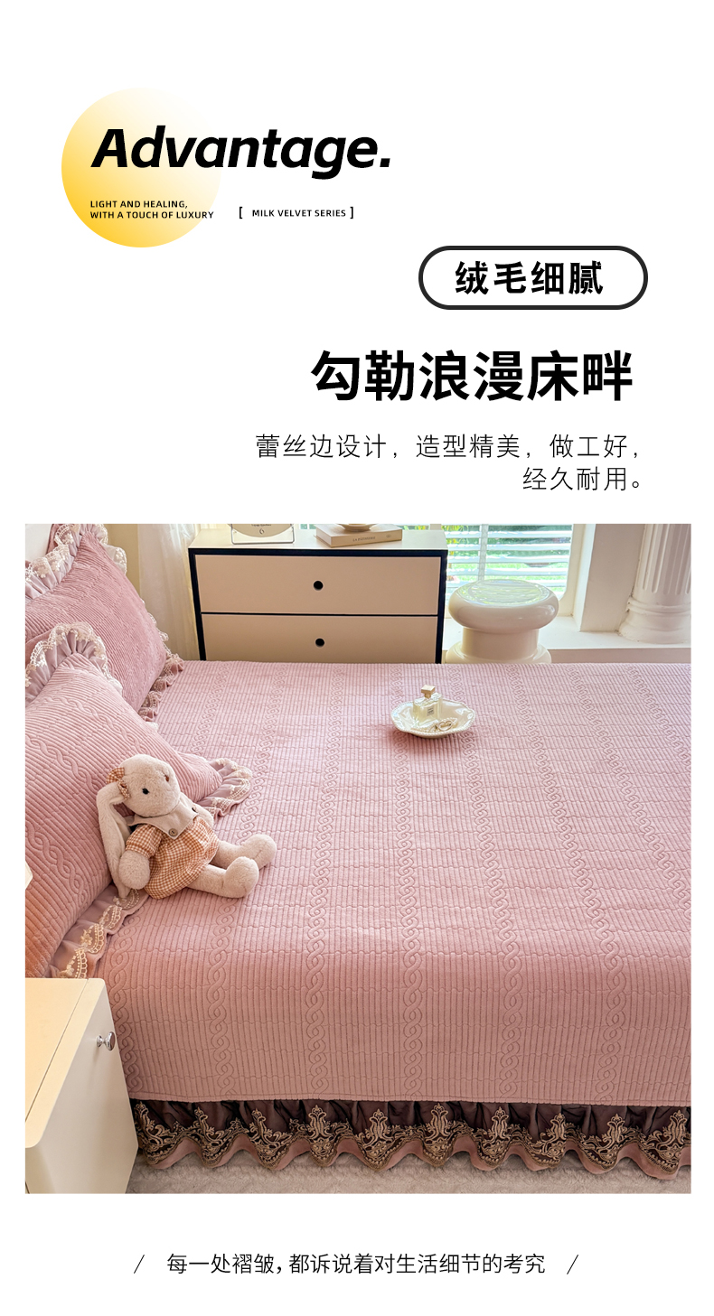 (总)美达家纺 2025新款牛奶绒雕花系列单床裙,床裙-爱心朵朵-咖,床裙-枫叶-绿,床裙-海浪涛涛-米白,床裙-蝴蝶花花-灰,床裙-丝丝如花-皮粉,床裙-丝丝如花-雾蓝