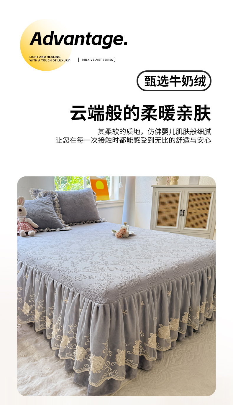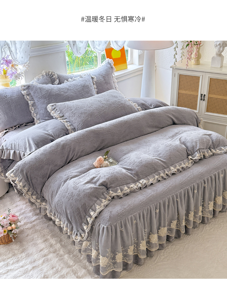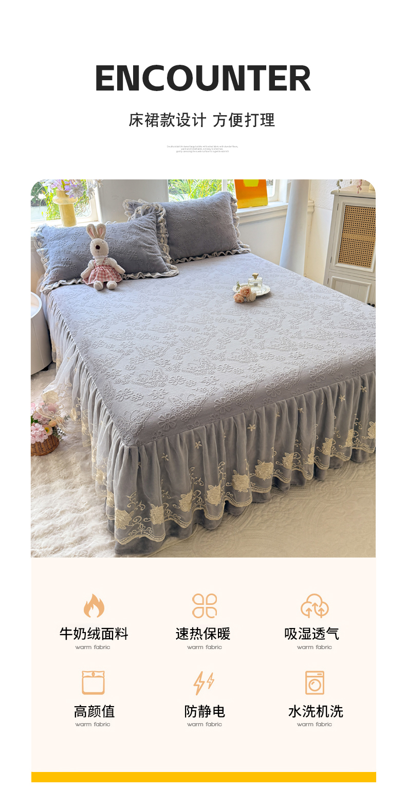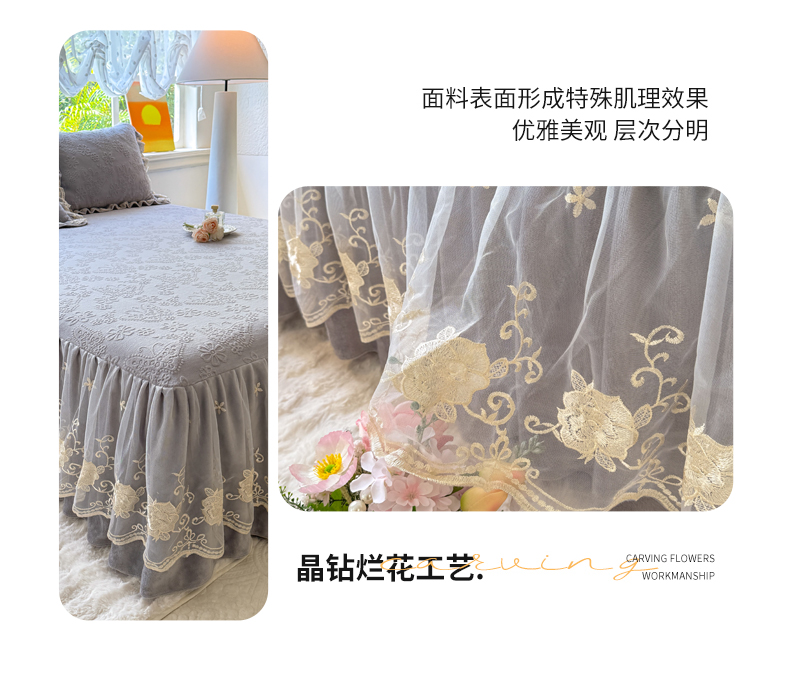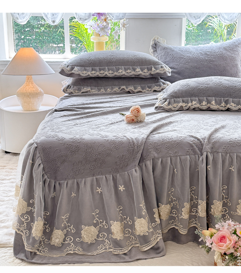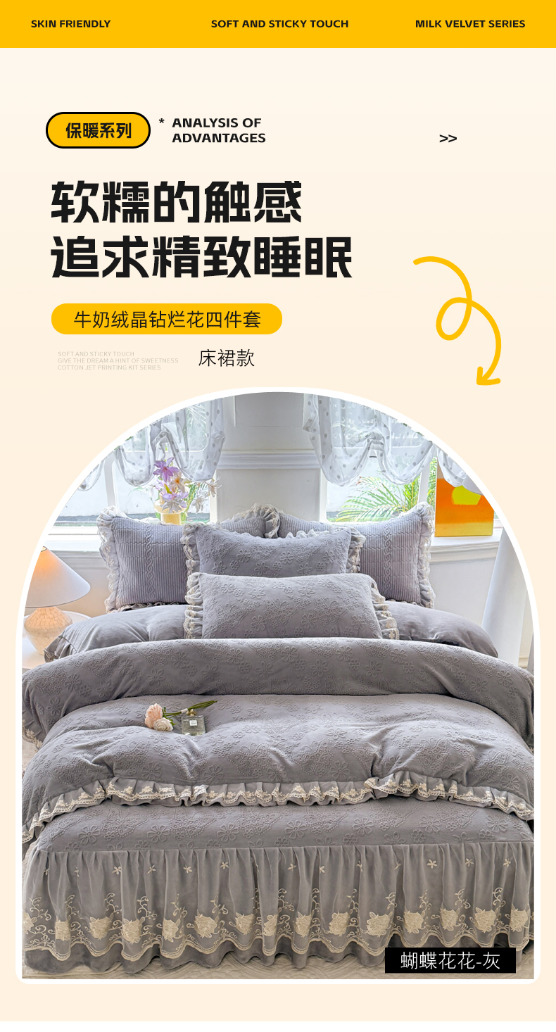 当前位置: 91家纺网 > 商品网购 > 床品套件 > 四件套 > 牛奶绒四件套 > 美达家纺 2025新款牛奶绒雕花系列床裙四件套 床裙-蝴蝶花花-灰