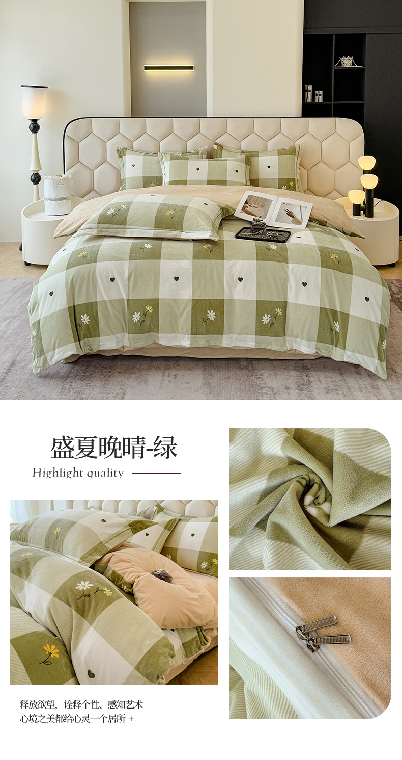 商品名称:喜四方 2025新款超细旦婴儿宝宝绒印花四件套 盛夏晚晴-绿