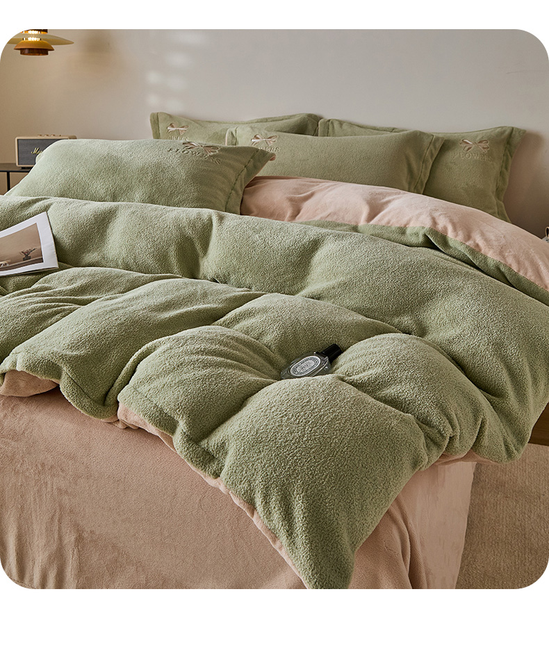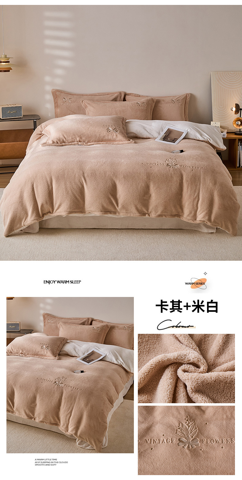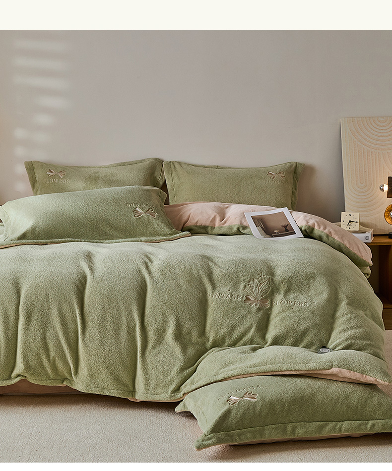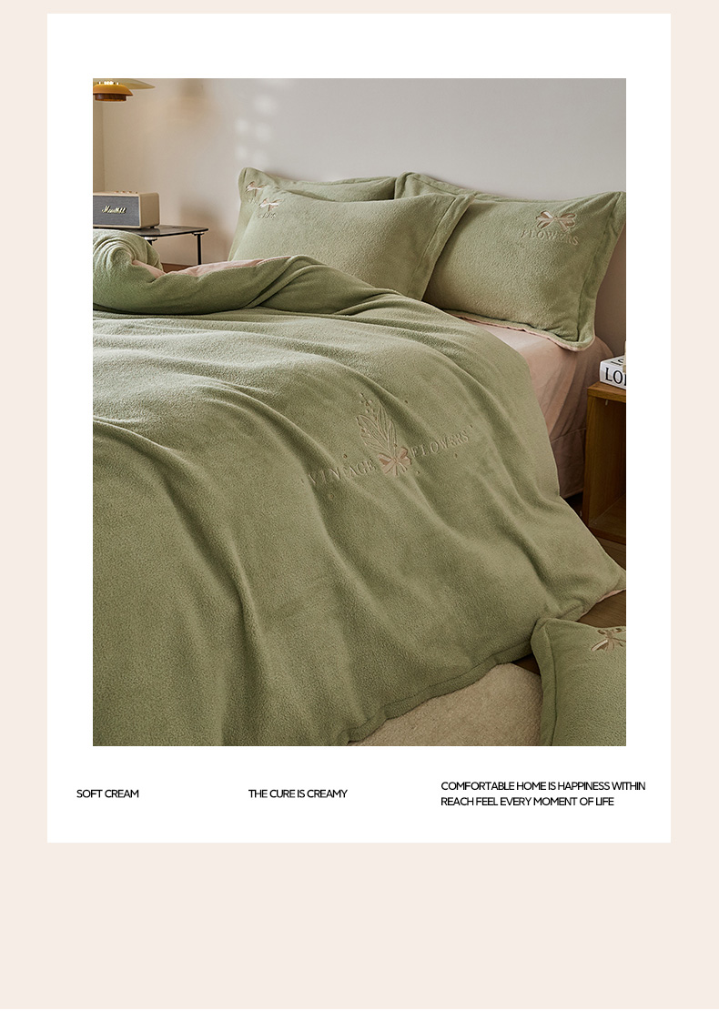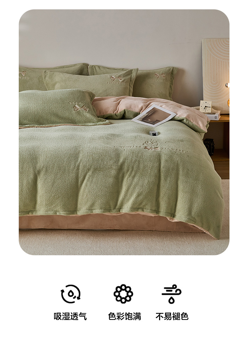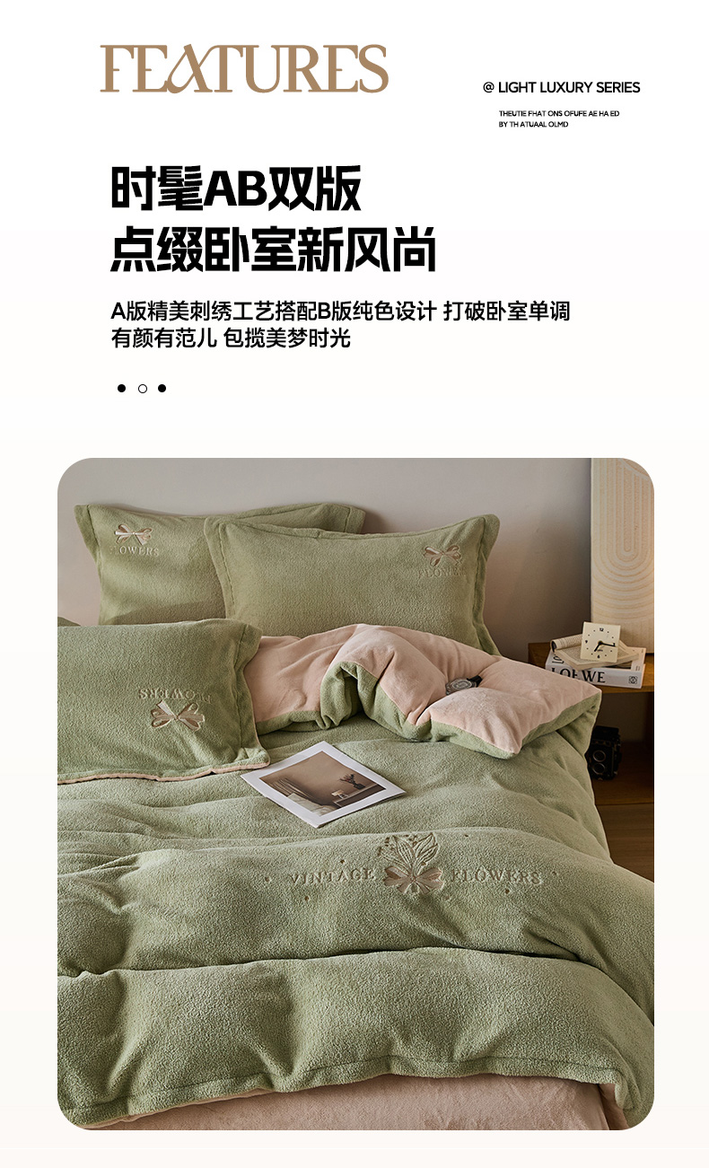 当前位置: 91家纺网 > 商品网购 > 床品套件 > 四件套 > 其它四件套 > 锦罗绣 2025新款雪尼绒艾尼绒230克全消光绣花系列四件套 果绿+卡其