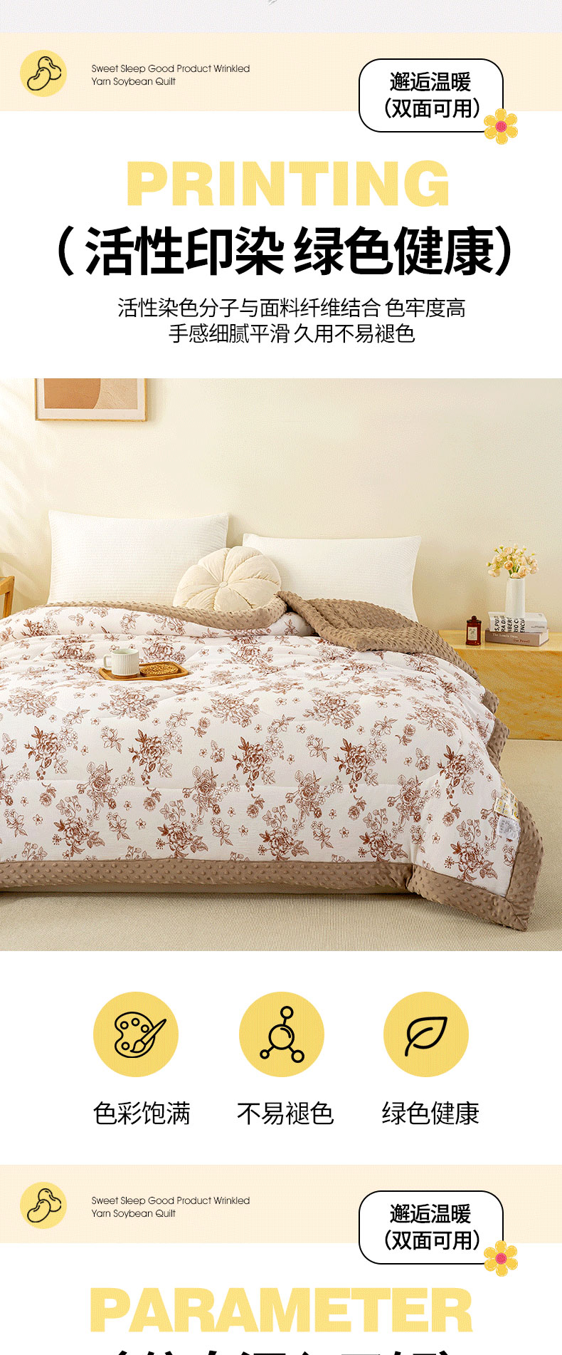 美梦之都 2025新款A类水洗豆豆绒印花大豆被子被芯 郁金香