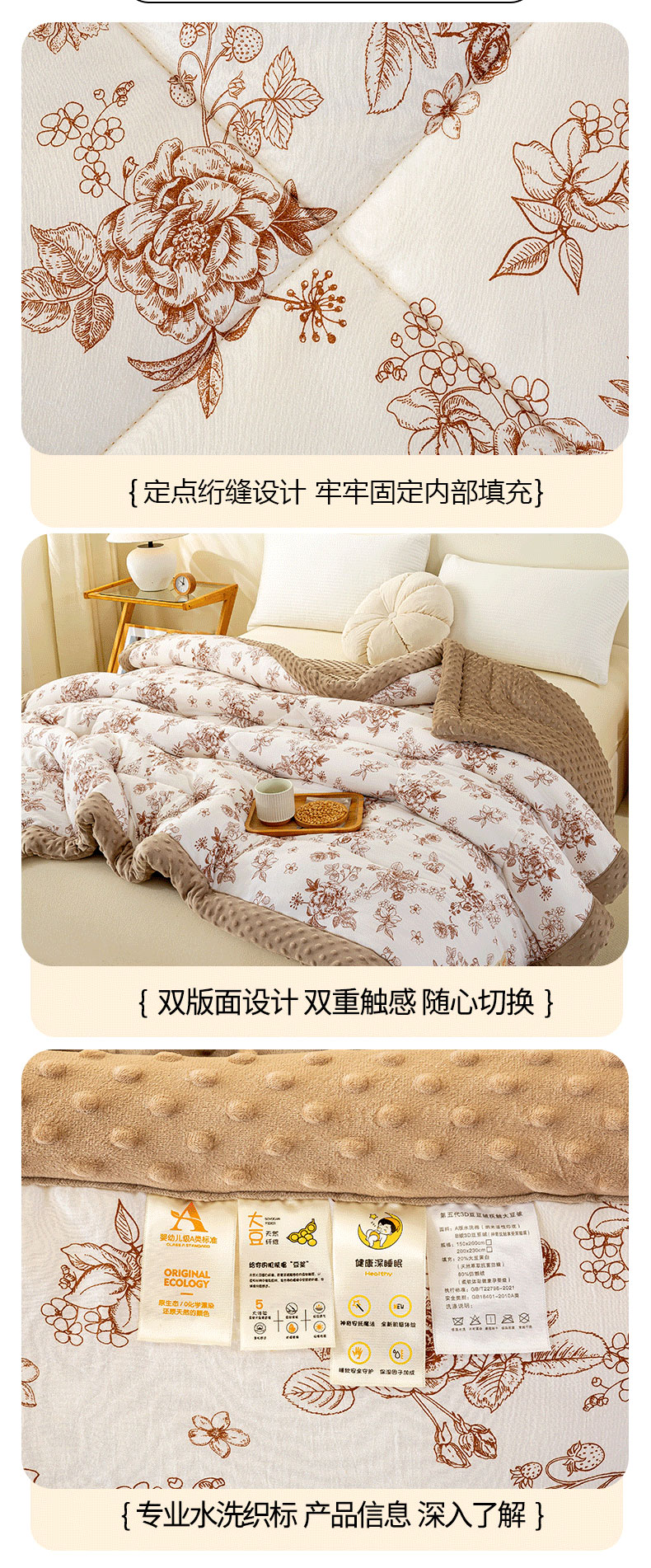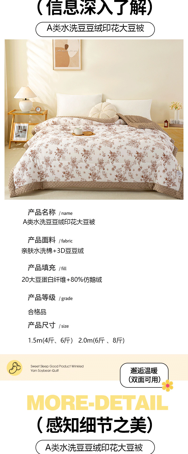 商品名称:美梦之都 2025新款A类水洗豆豆绒印花大豆被子被芯 郁金香