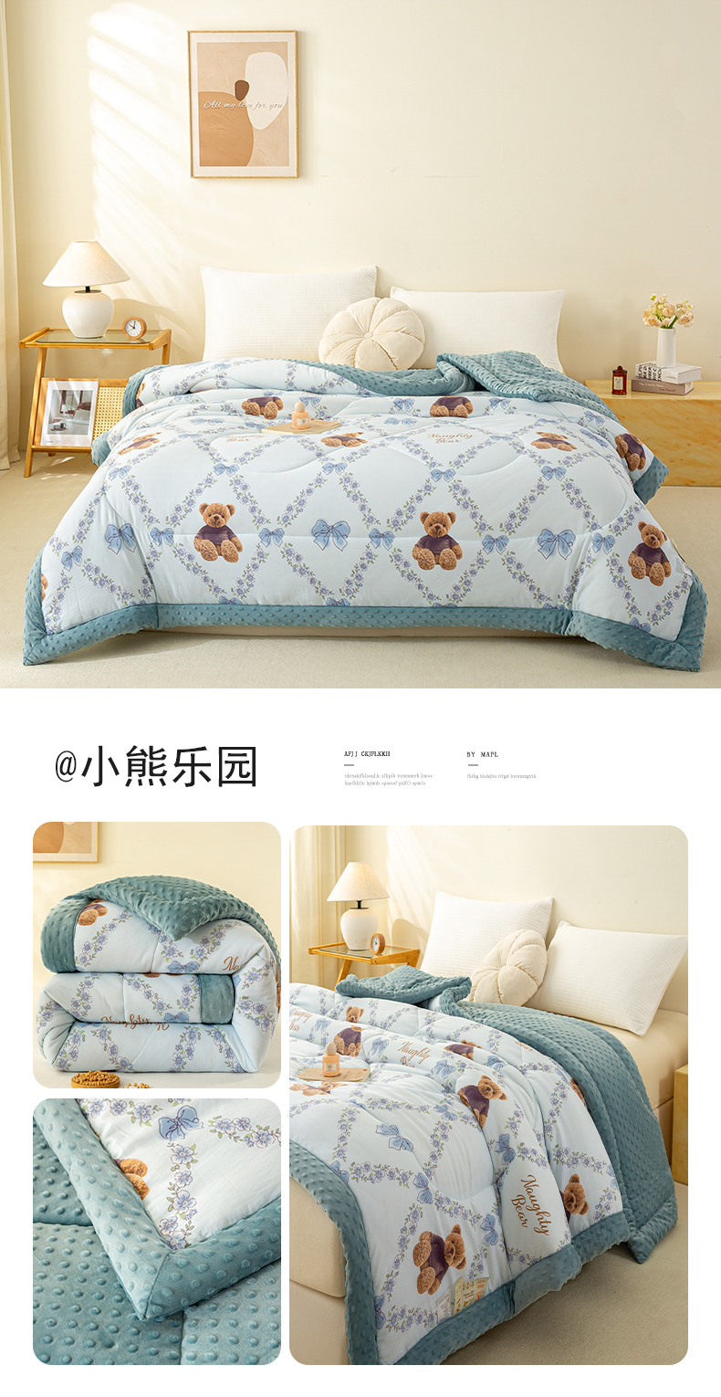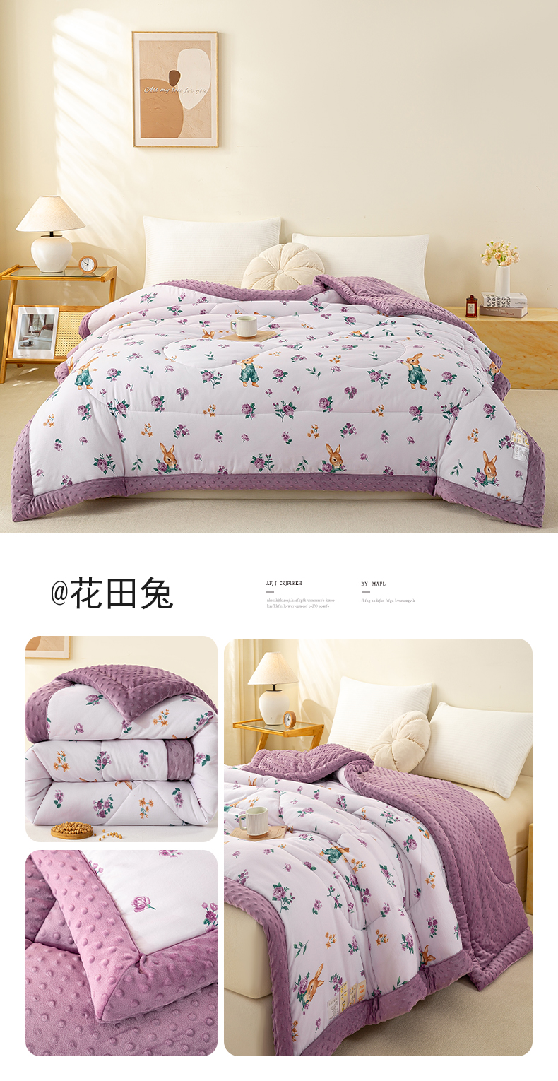 (总)美梦之都 2025新款A类水洗豆豆绒印花大豆被子被芯,繁花似锦,简夕粉,郁金香,玉小格,小熊乐园,兰小格,简夕兰,可爱熊猫,花田紫,花田兔