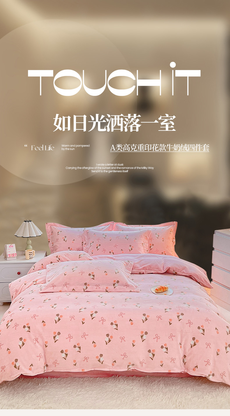 当前位置: 91家纺网 > 商品网购 > 床品套件 > 四件套 > 牛奶绒四件套 > 锦罗绣 2025新款230克牛奶绒印花四件套 郁金香