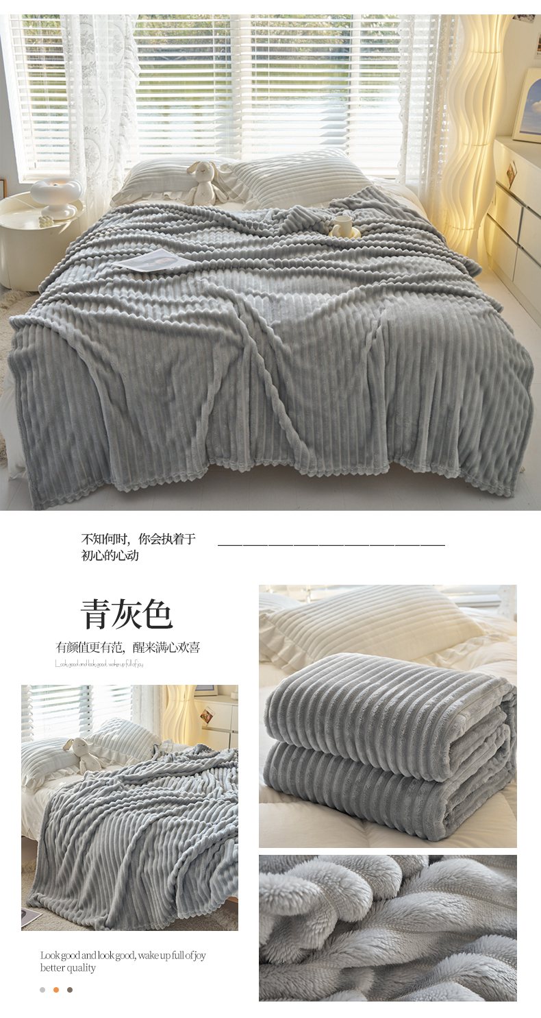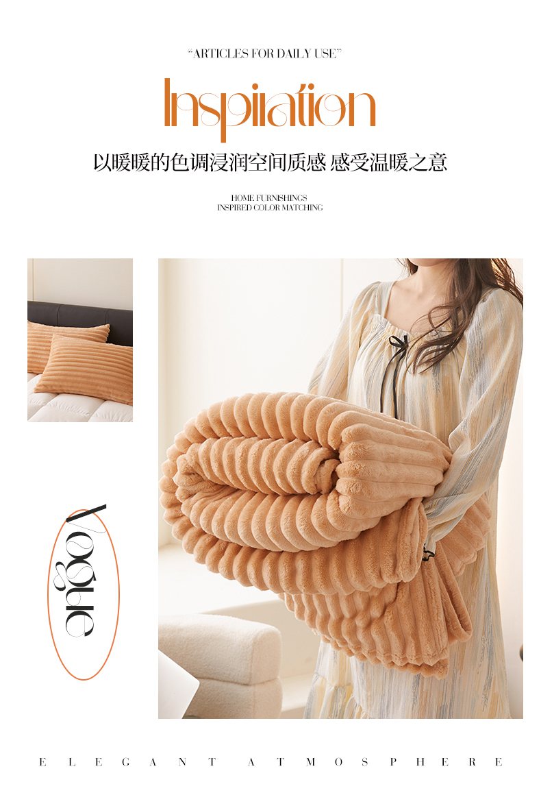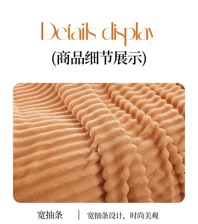 商品名称:(总)畅畅家纺 2025新款春秋冬兔毛绒宽抽条纯色软糯亲肤毛毯盖毯