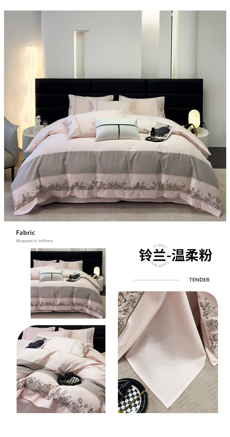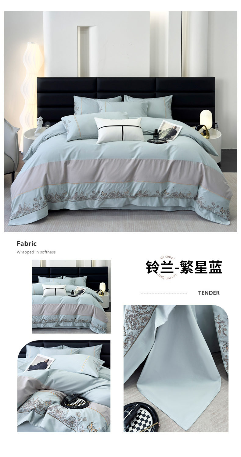 (总)苏美 2025新款加厚全棉绣花四件套-铃兰,铃兰-繁星蓝,铃兰-高级灰,铃兰-天空蓝,铃兰-温柔粉