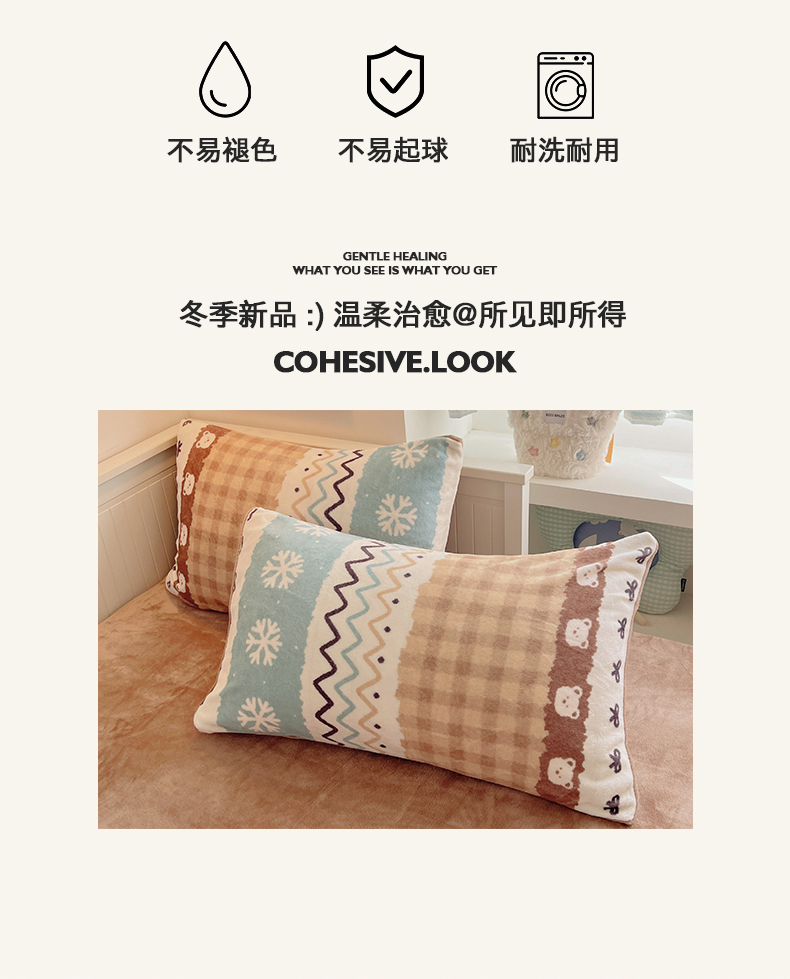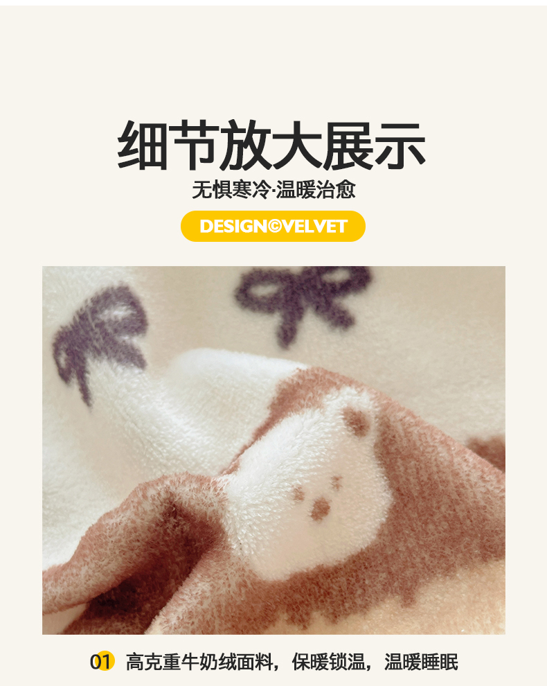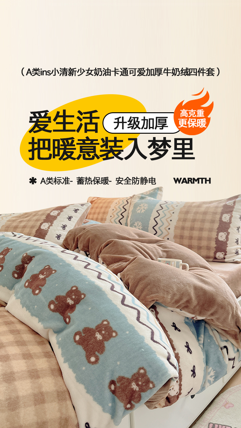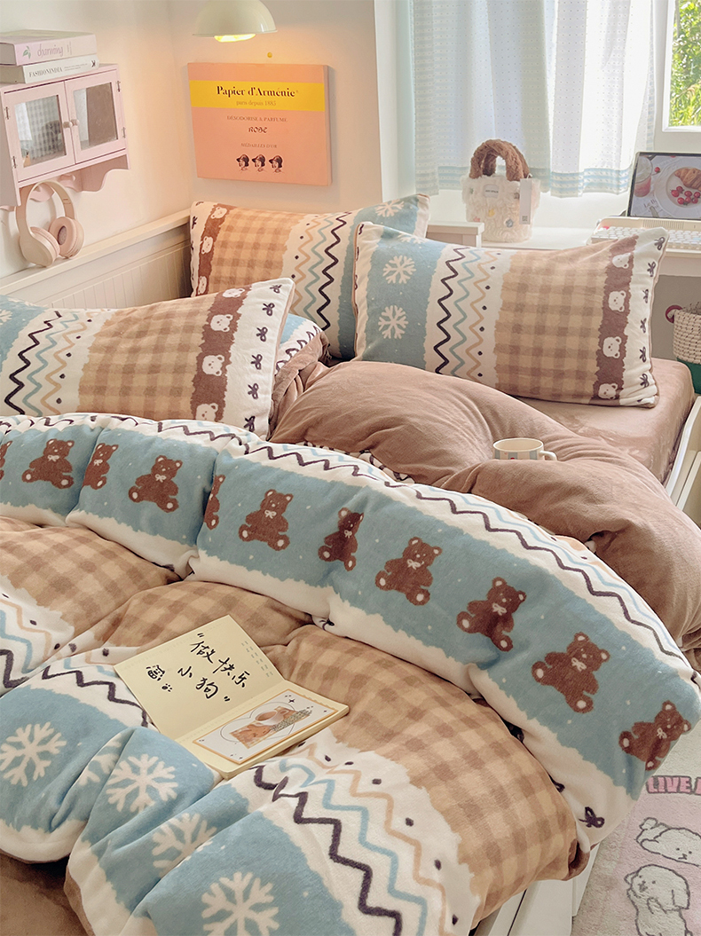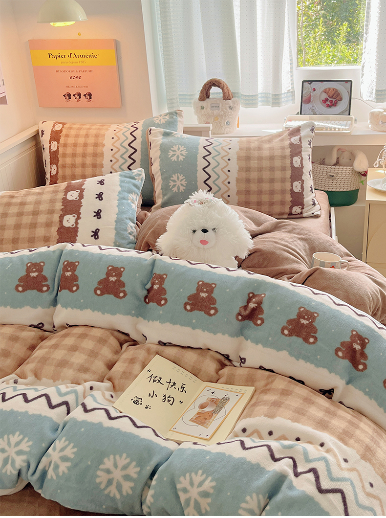 金爱家 2025新款A类ins小清新少女奶油卡通可爱加厚牛奶绒四件套 绒-菲尔岛小熊