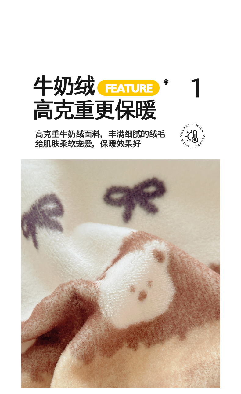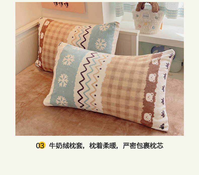 商品名称:金爱家 2025新款A类ins小清新少女奶油卡通可爱加厚牛奶绒四件套 绒-菲尔岛小熊