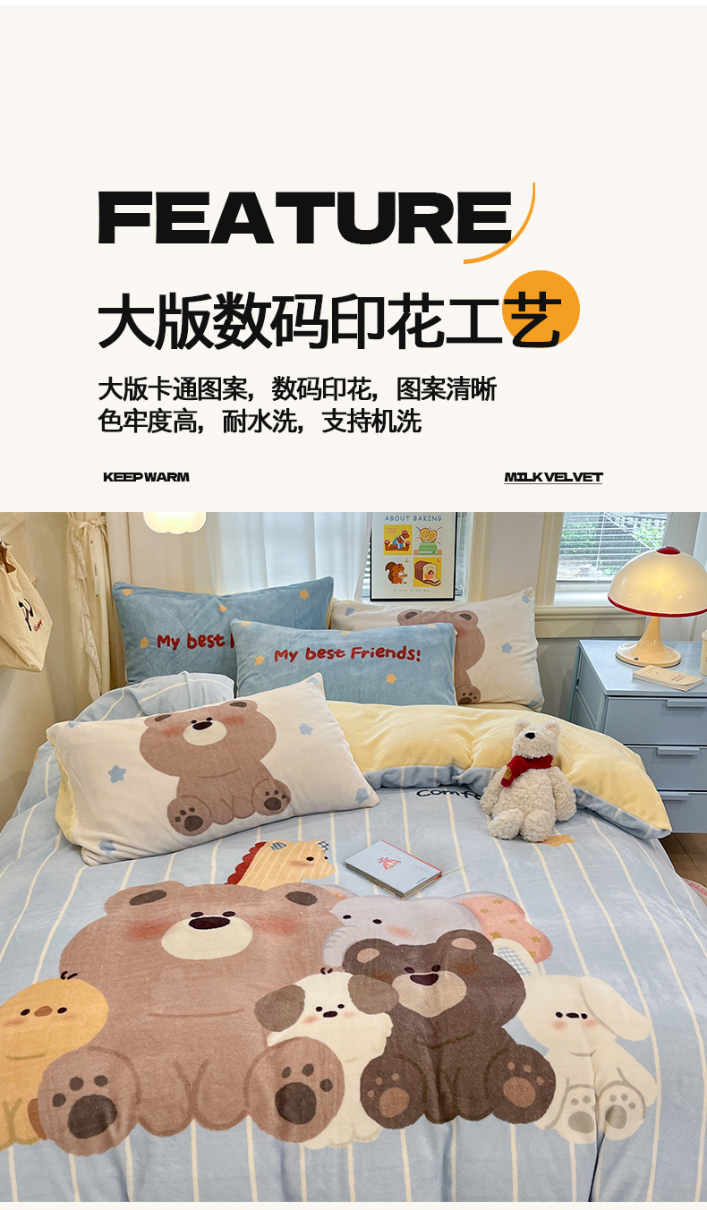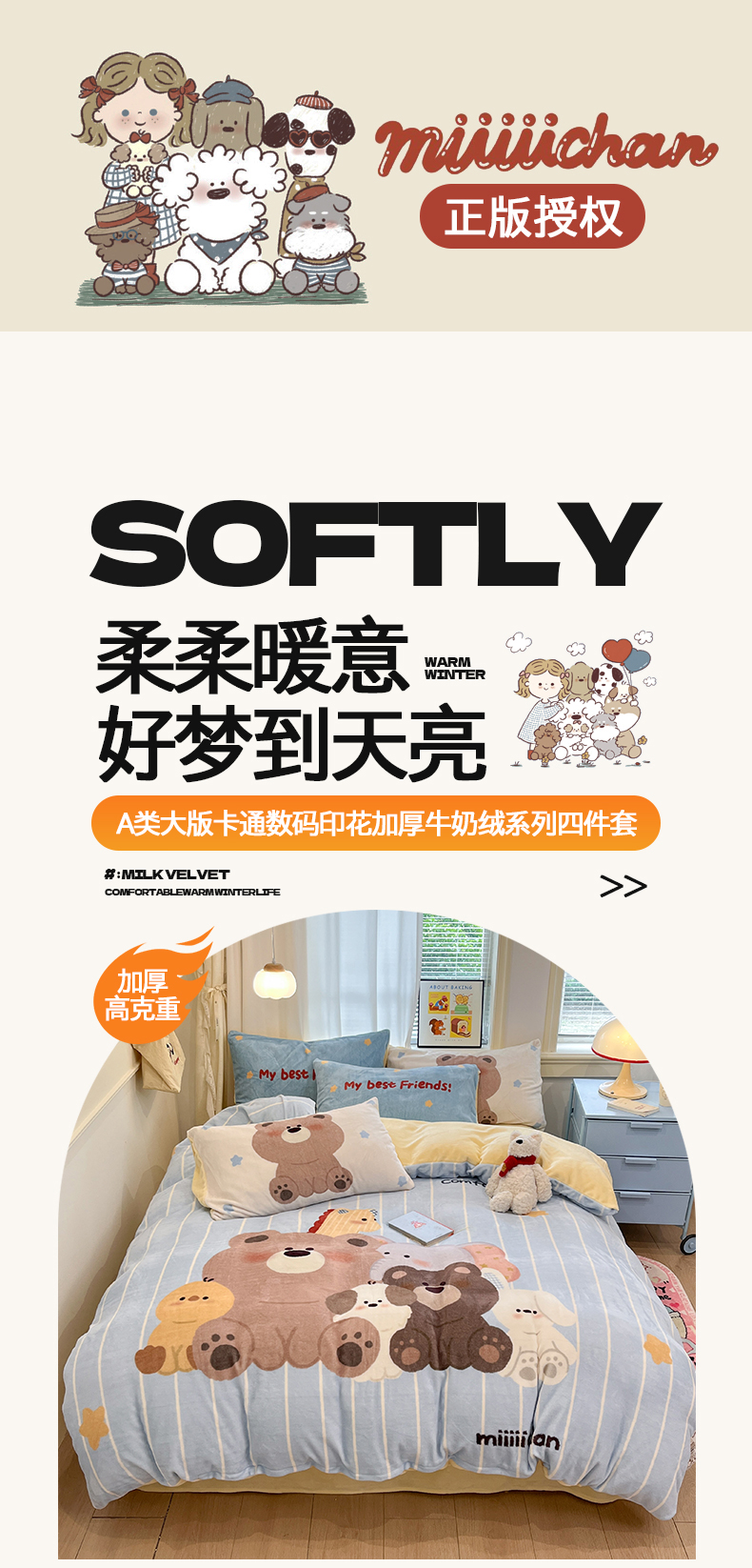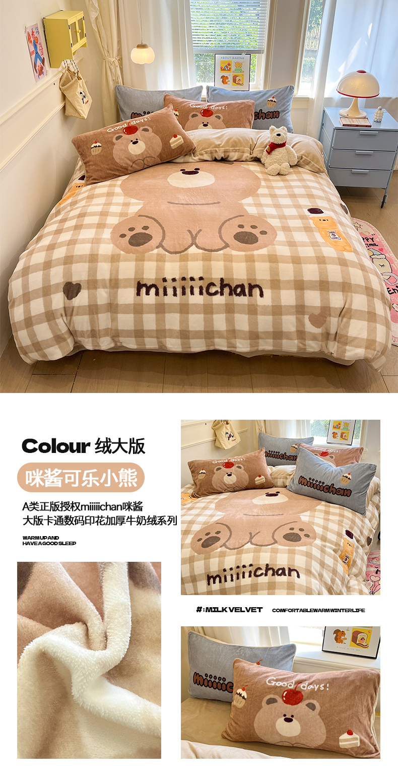 当前位置: 91家纺网 > 商品网购 > 床品套件 > 四件套 > 牛奶绒四件套 > 金爱家 2025新品A类正版授权miiiiichan咪酱大版卡通数码印花加厚牛奶绒系列四件套 绒大版-咪酱奶油伙伴