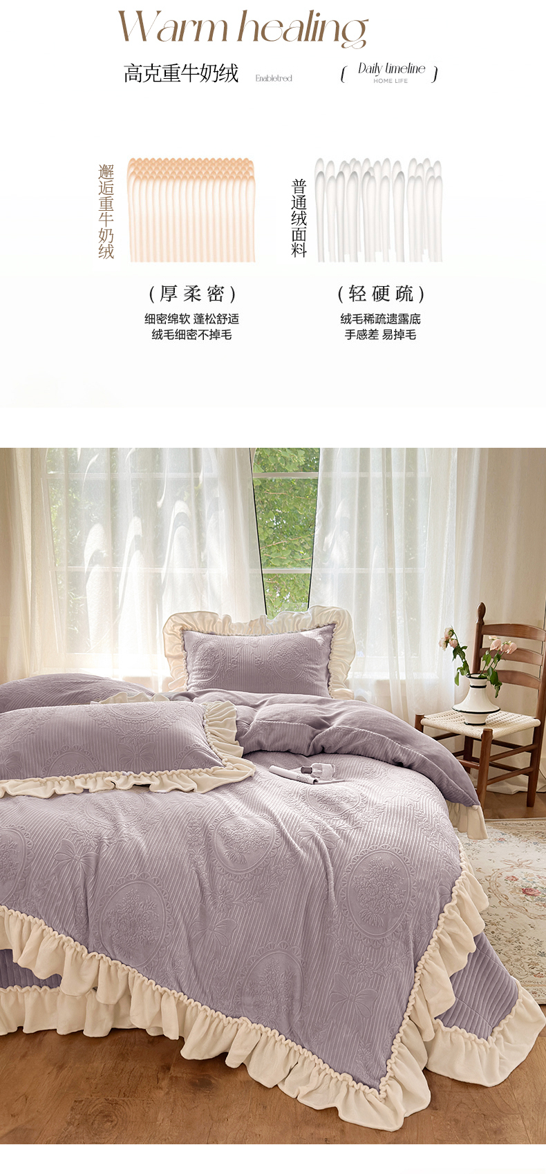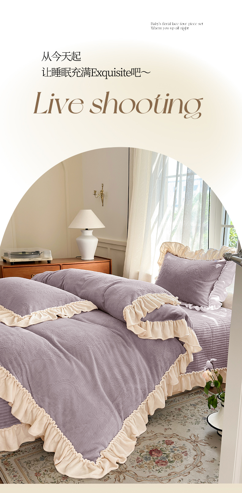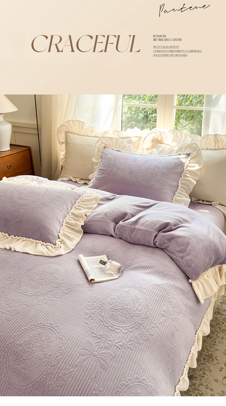 当前位置: 91家纺网 > 商品网购 > 床品套件 > 四件套 > 牛奶绒四件套 > 乐野家居 2025年新款轻法式甜心蝴蝶结高克重提花牛奶绒床盖四件套 甜心蝴蝶结-紫