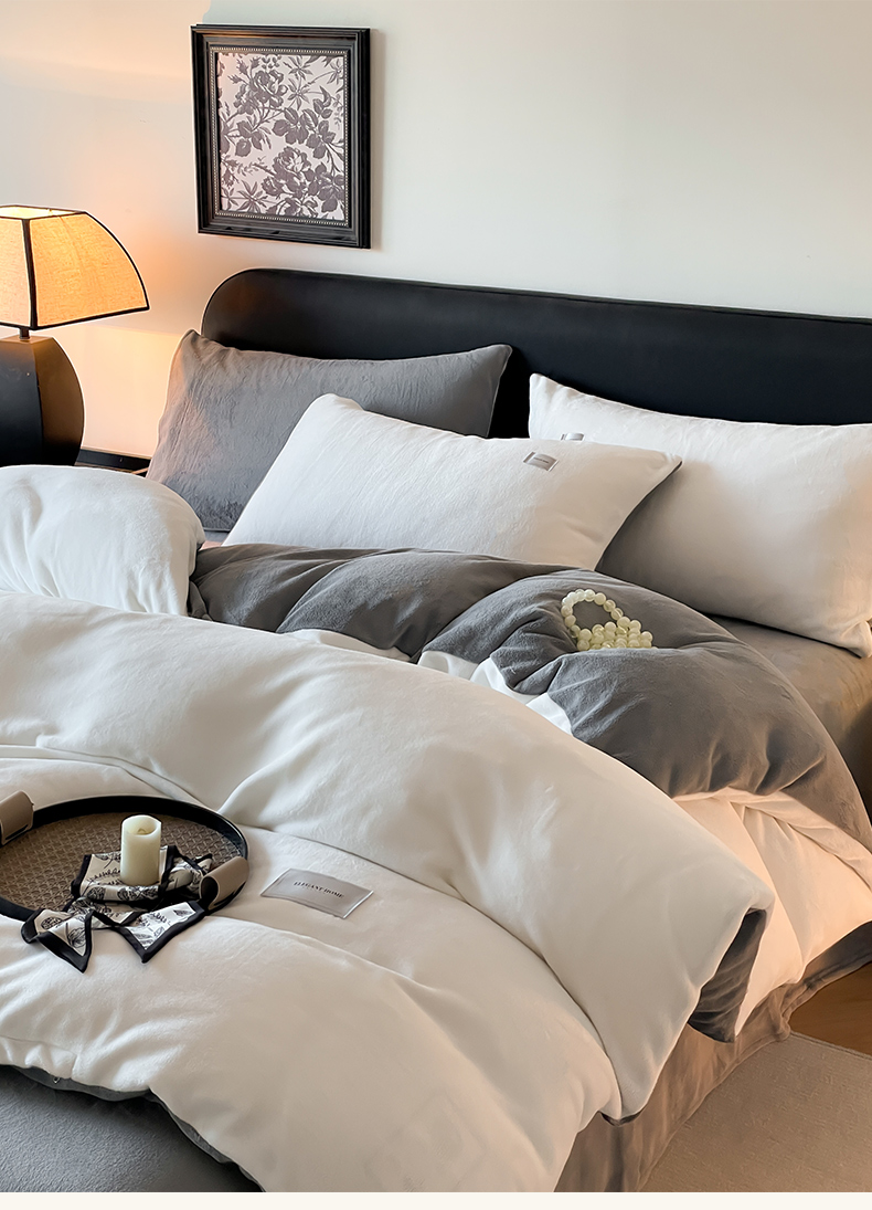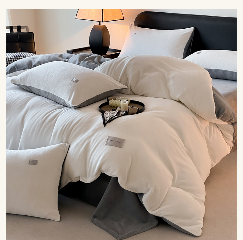 当前位置: 91家纺网 > 商品网购 > 床品套件 > 四件套 > 牛奶绒四件套 > ab家纺 2025新款保暖舒适纯色牛奶绒四件套 米月白深灰