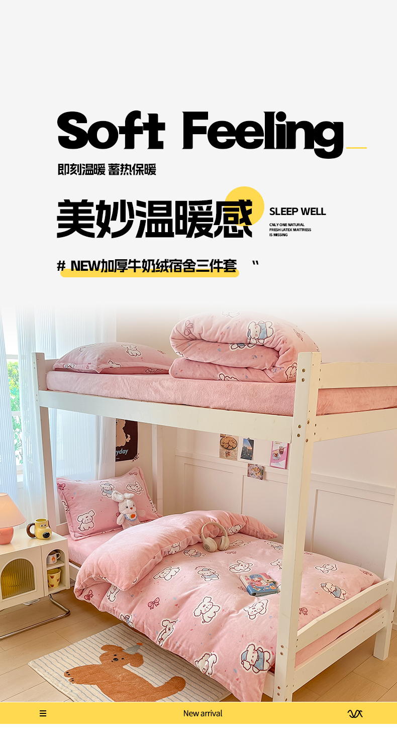 商品名称:(总)川悦生活 2025新款加厚保暖高克重牛奶绒宿舍三件套