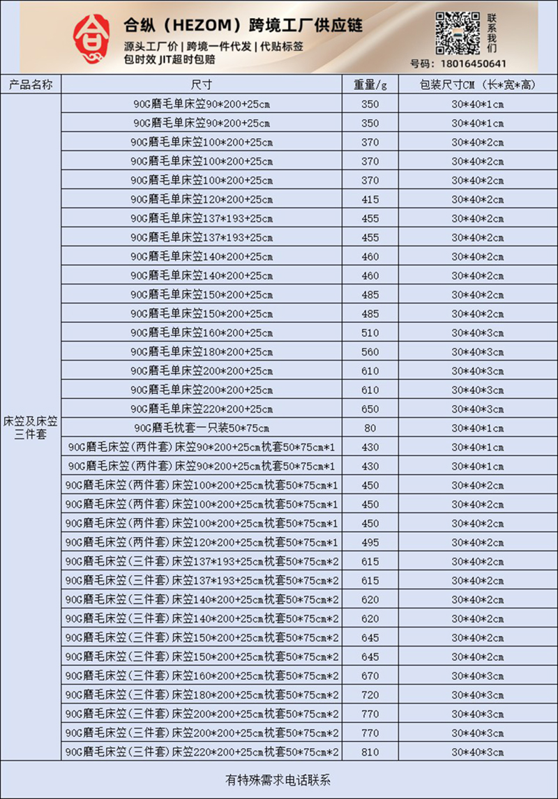 160*200cm磨毛床笠三件套 | ¥39.00 |