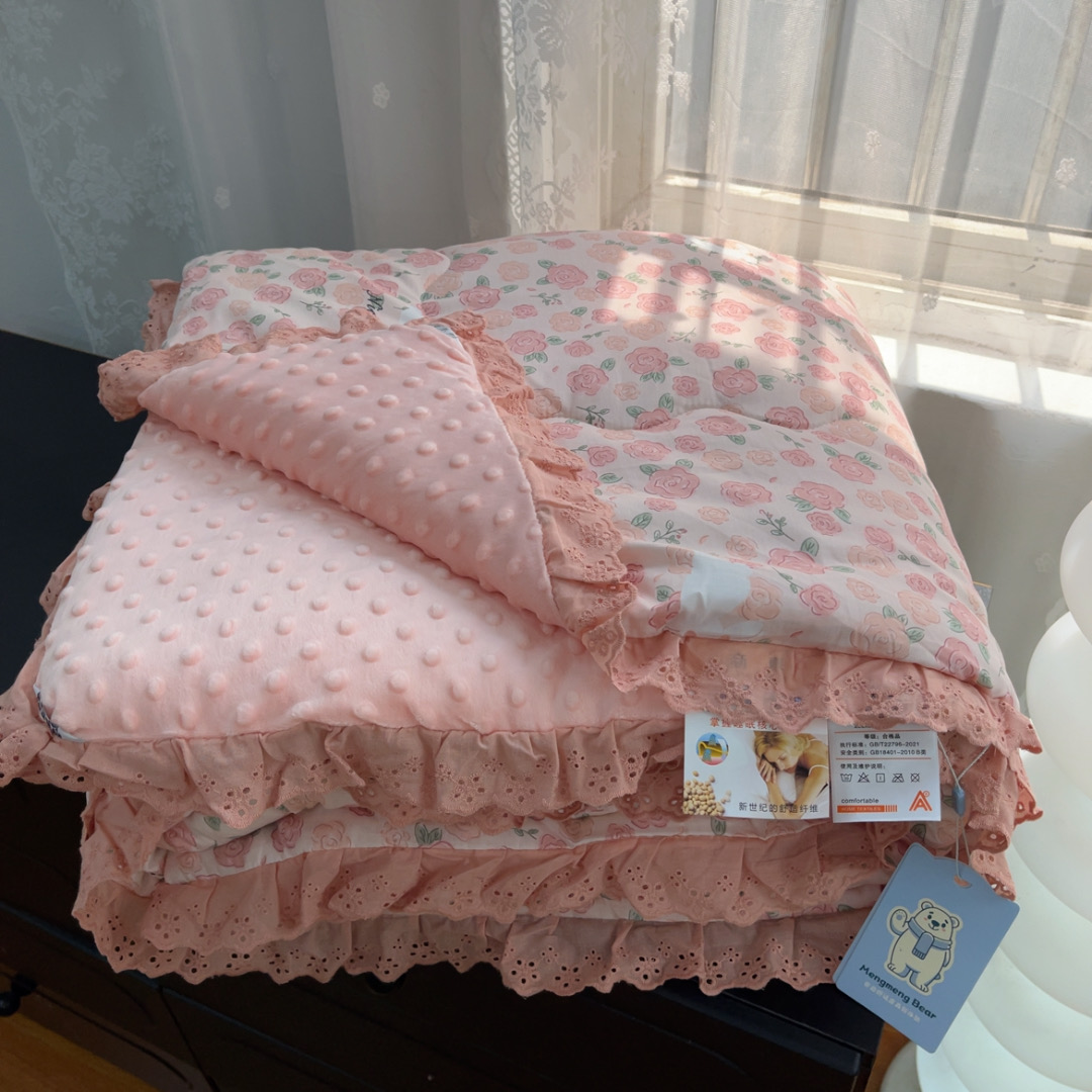 商品名称:暖居 2025新款纯棉花边款春秋豆豆被四季通用 爱情故事