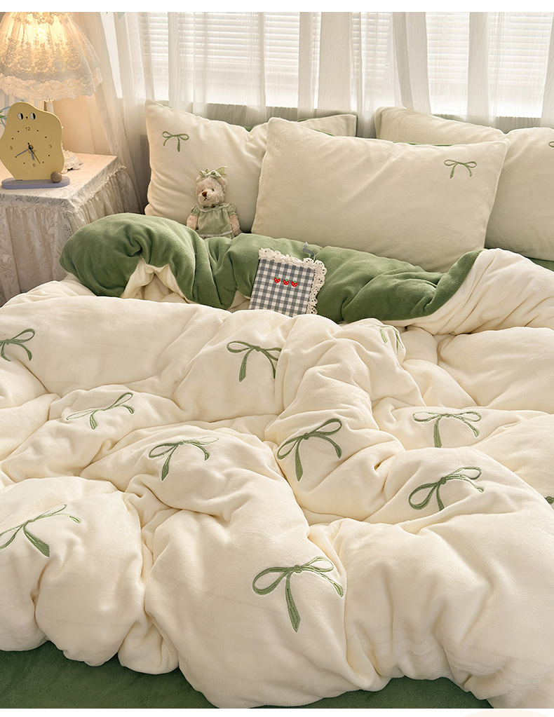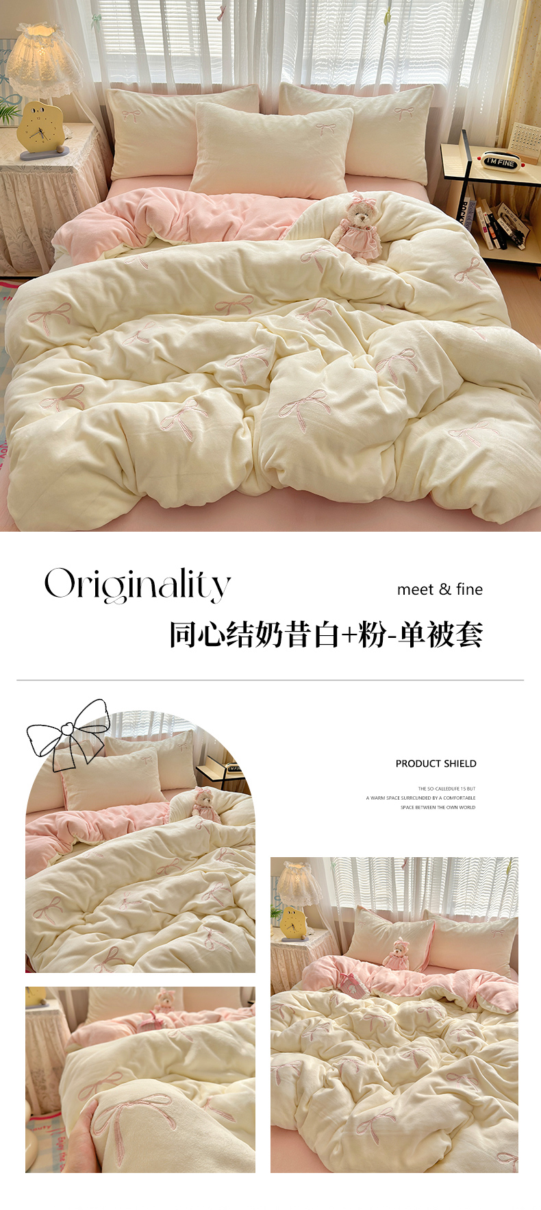 商品名称:娜娜 2025新款高克重牛奶绒同心结系列单品被套 同心结奶昔白+绿