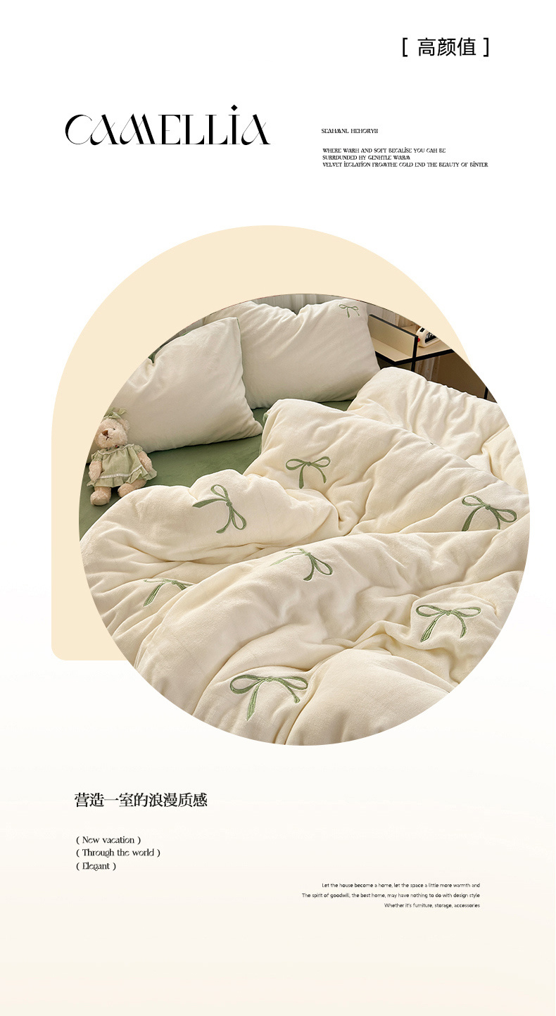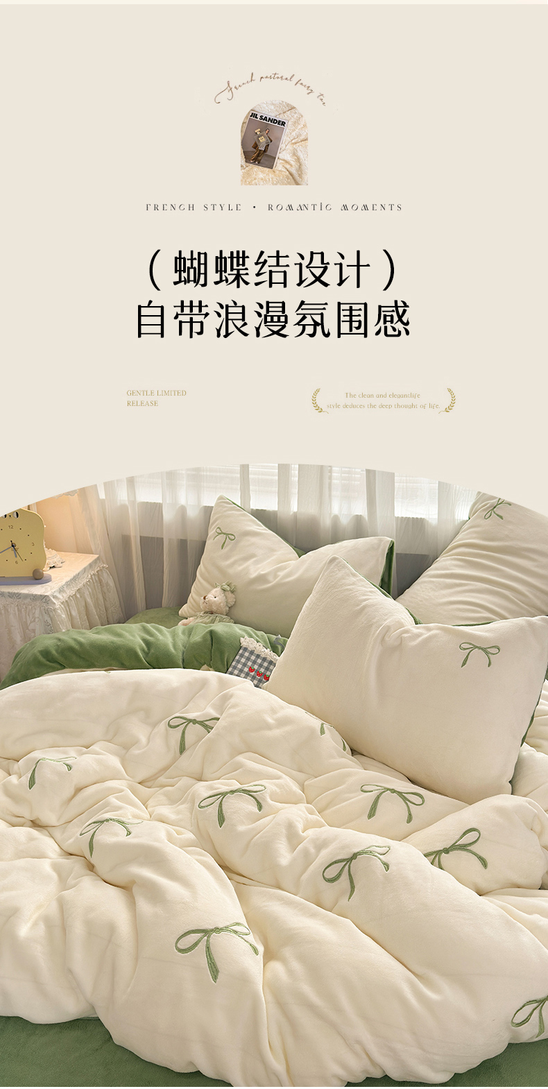 娜娜 2025新款高克重牛奶绒同心结系列单品被套 同心结奶昔白+绿