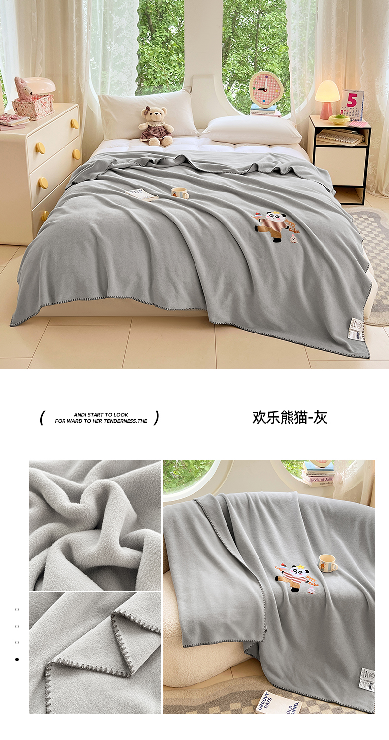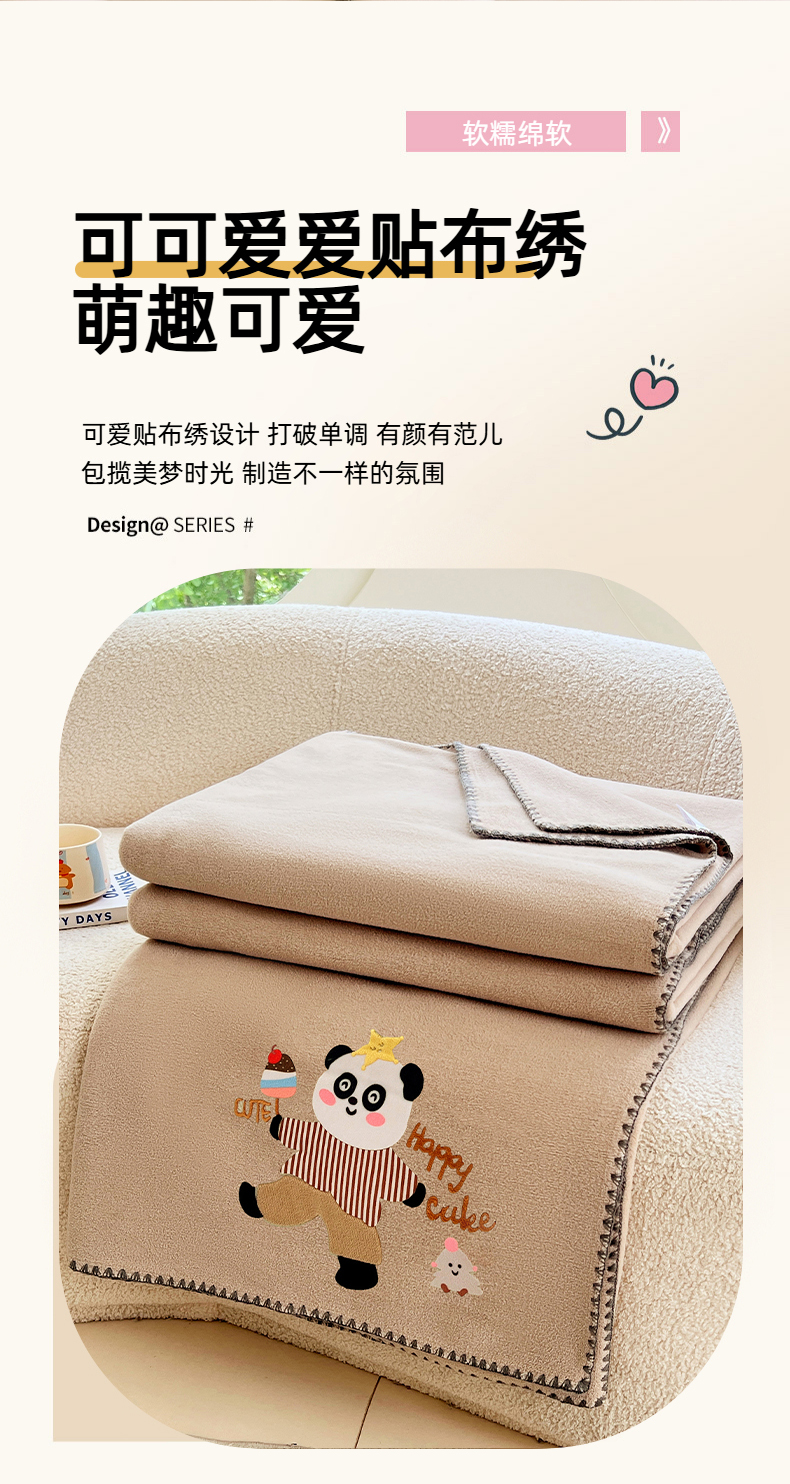 (总)凯轩毛毯网销专供 2025新款仿羊绒贴布绣毛毯毯子,欢乐熊猫-粉,欢乐熊猫-灰,欢乐熊猫-咖,欢乐熊猫-蓝,欢乐熊猫-绿,欢乐熊猫-米白