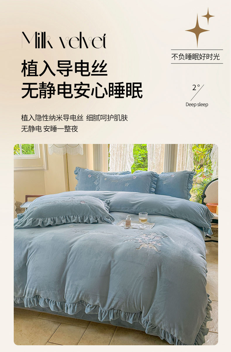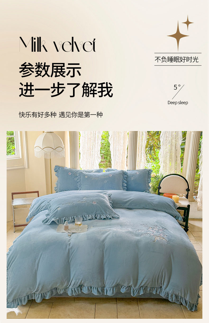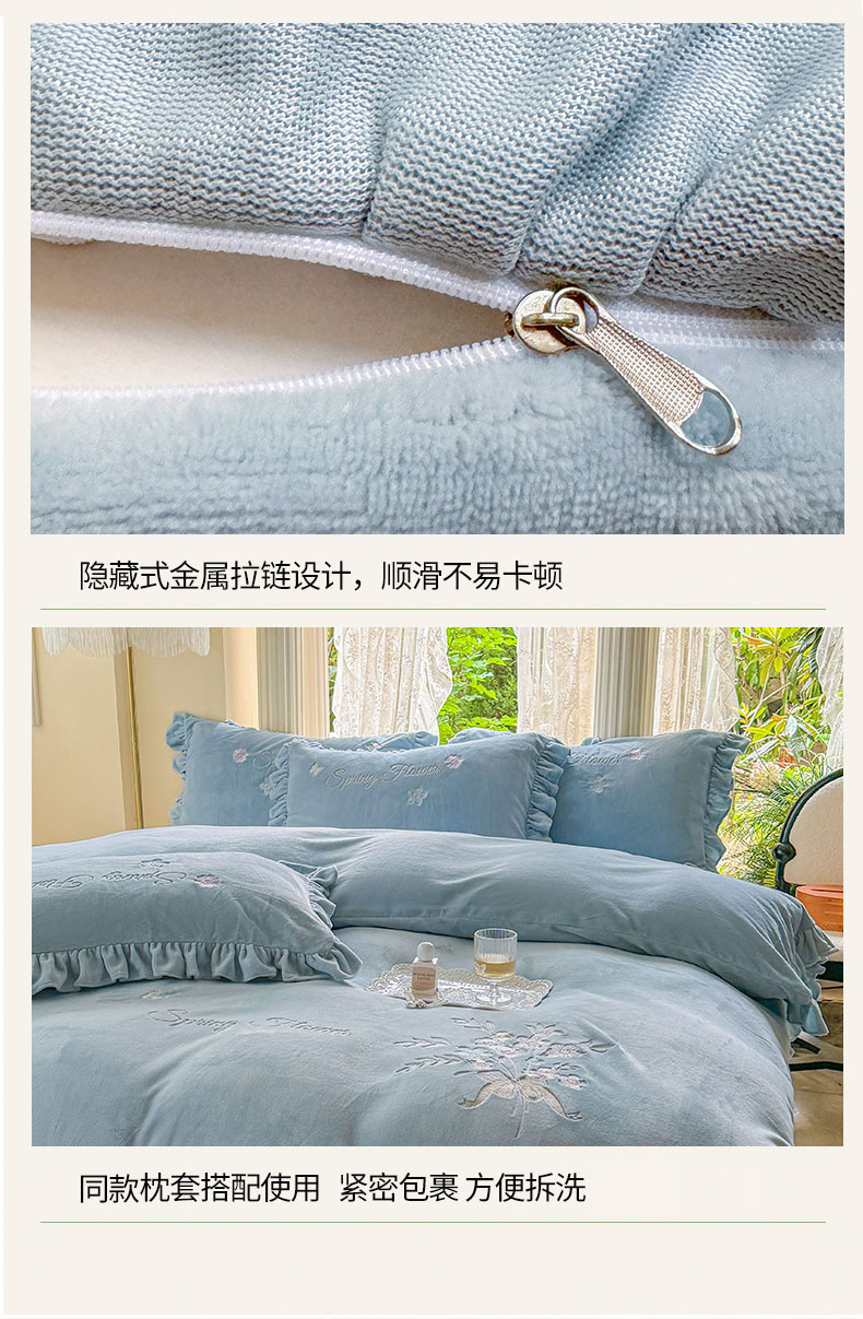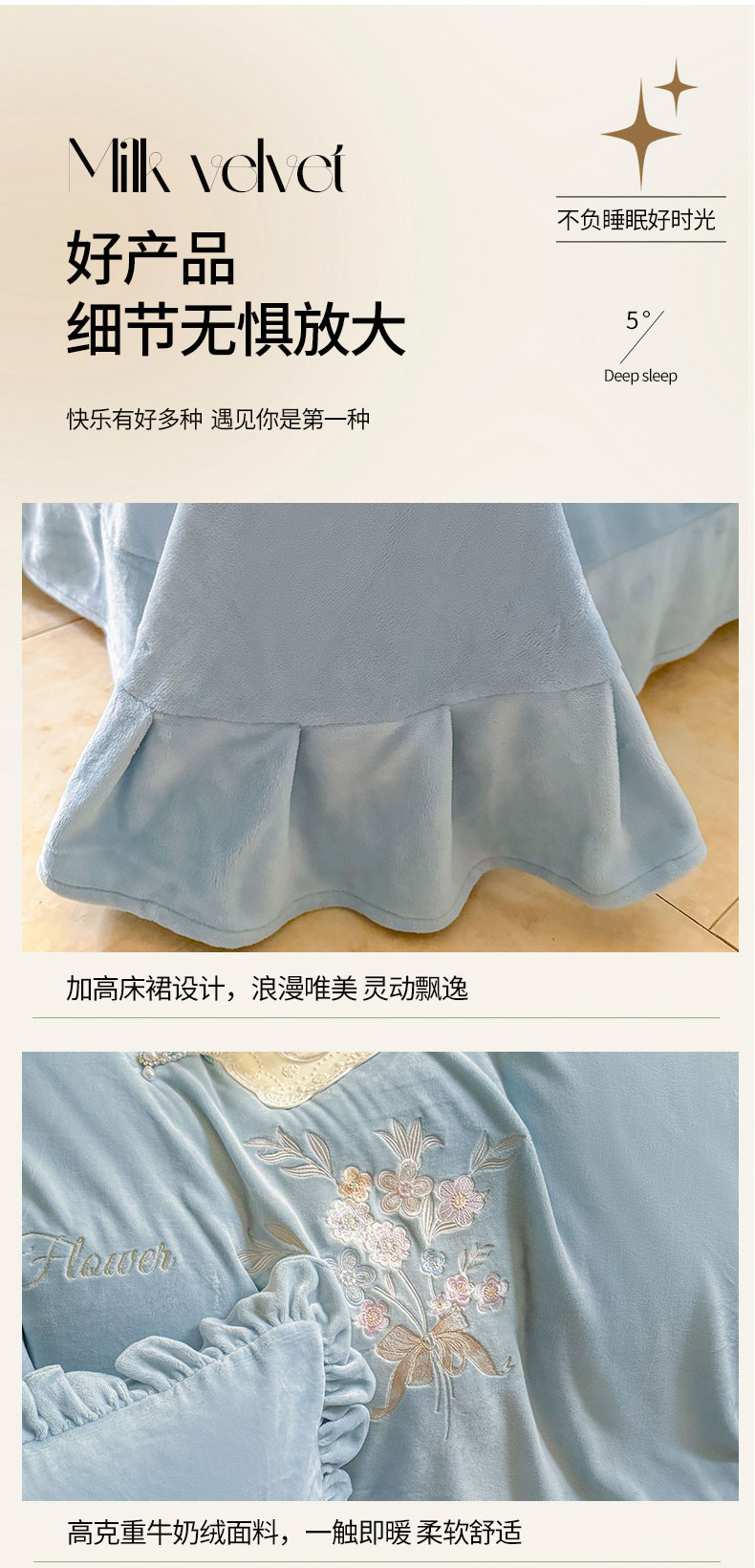 商品名称:美洲琳 2025新款高克重牛奶绒绣花四件套 手捧花-浅蓝