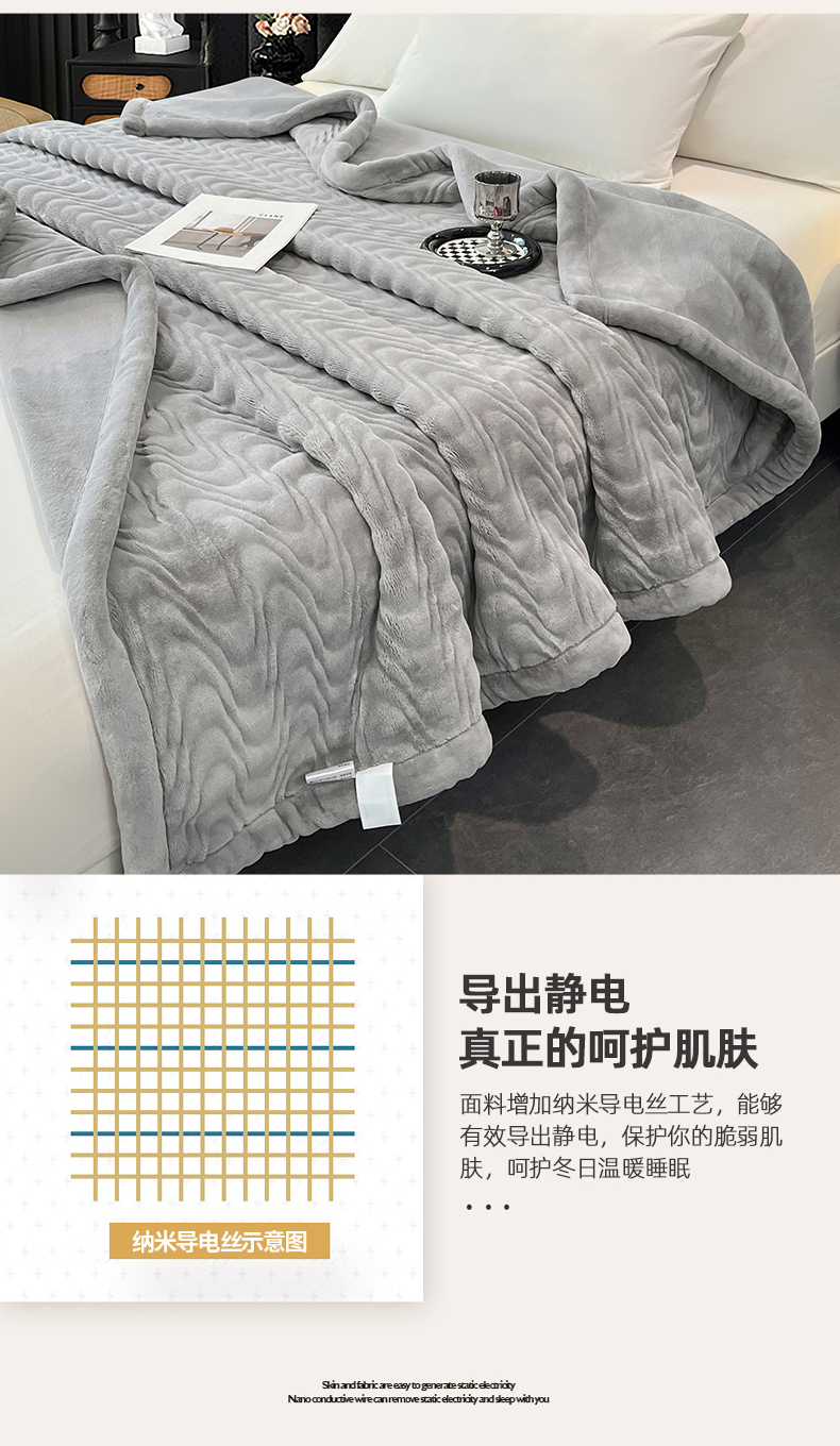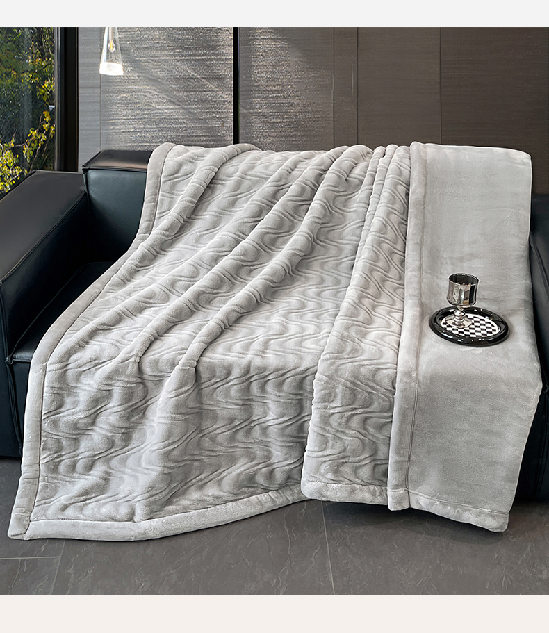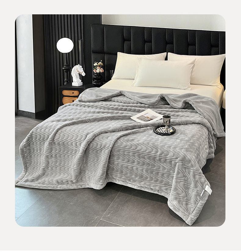 凯轩毛毯网销专供 2025新款水波纹精品婚庆云毯毛毯 水波纹-银石灰