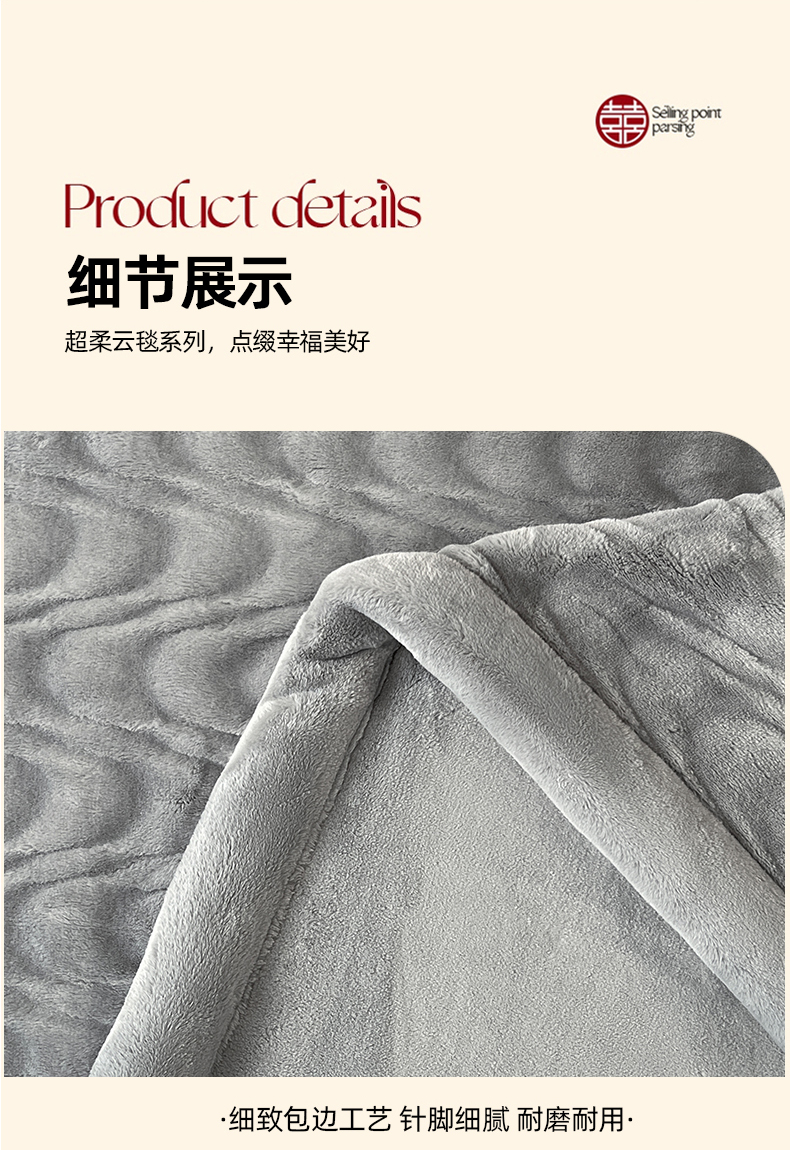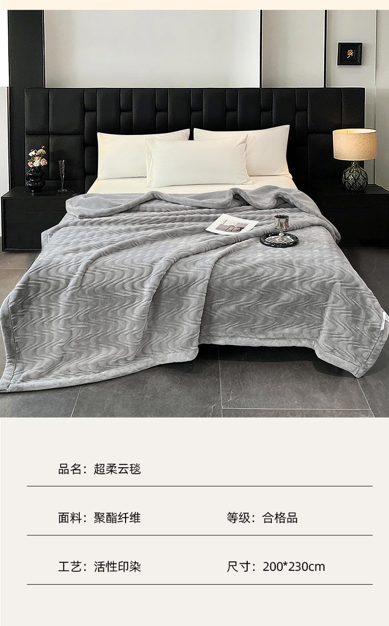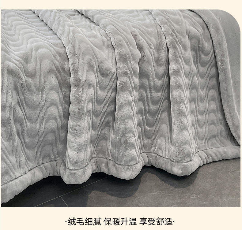 商品名称:凯轩毛毯网销专供 2025新款水波纹精品婚庆云毯毛毯 水波纹-银石灰
