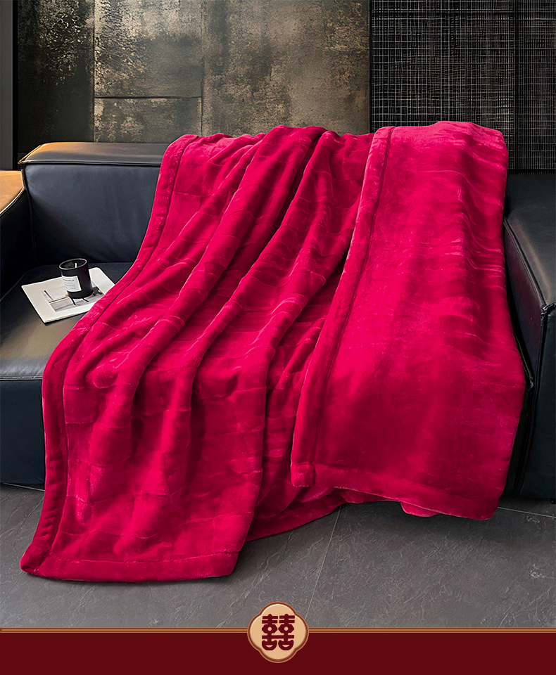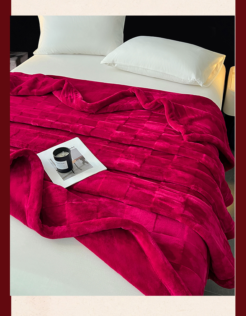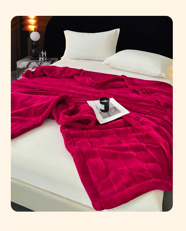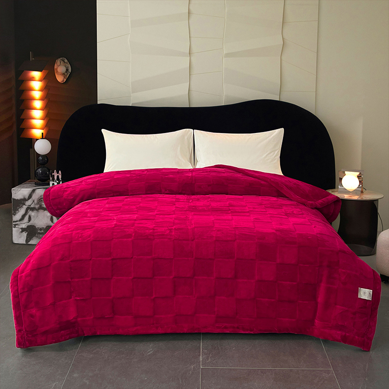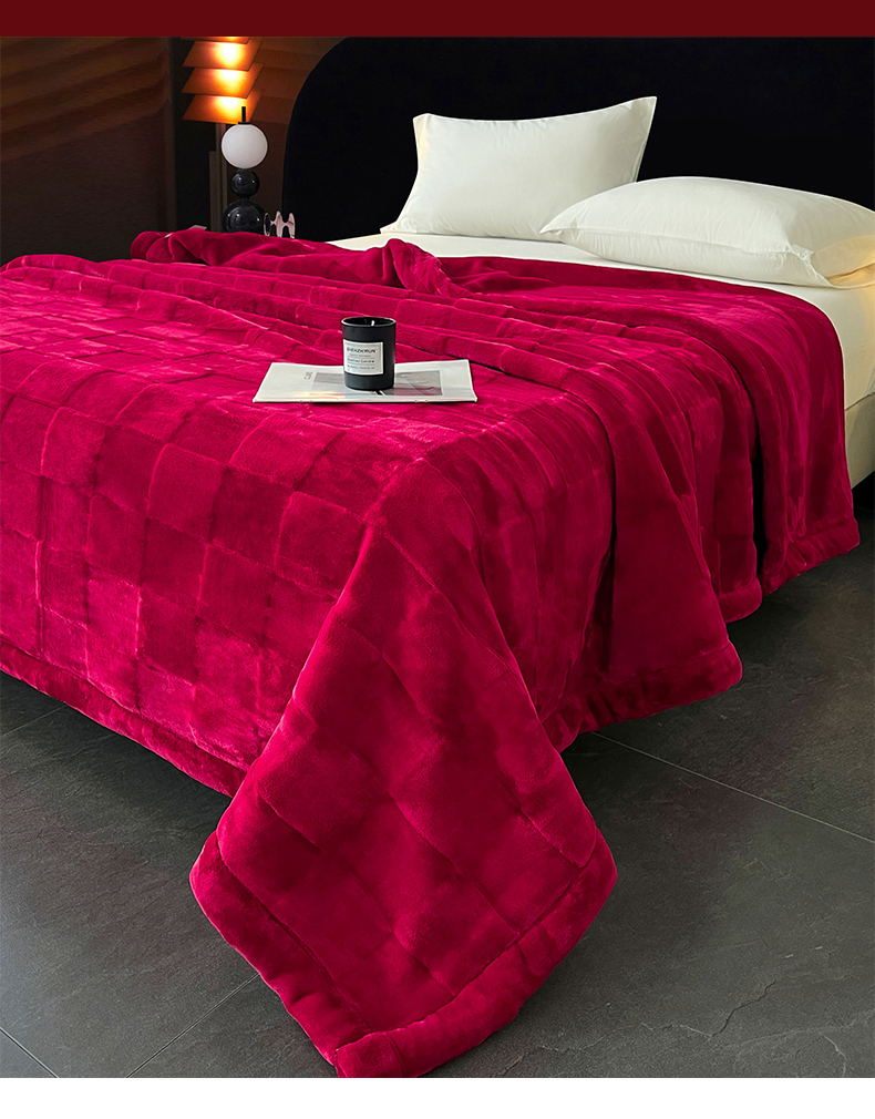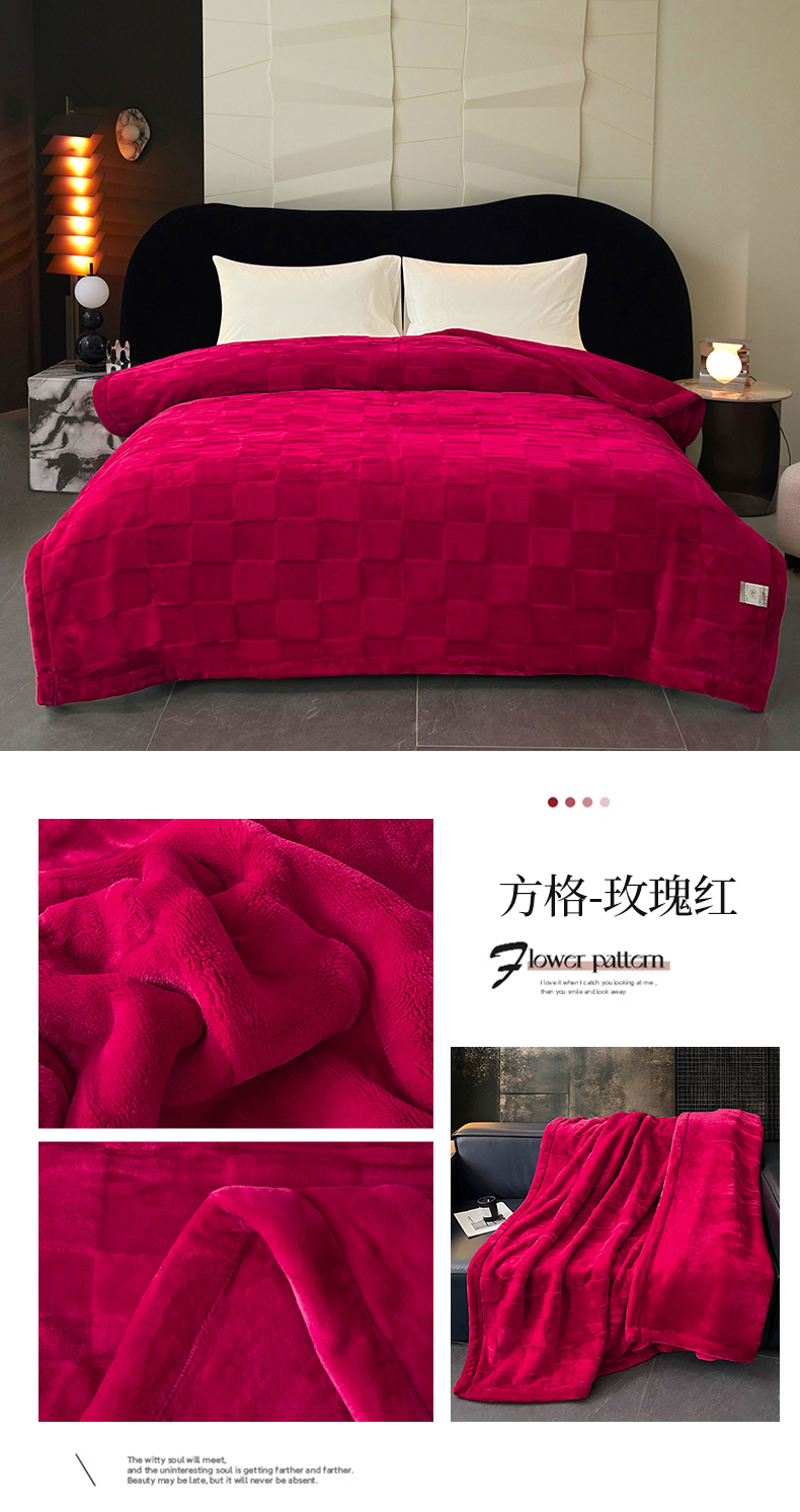 凯轩毛毯网销专供 2025新款方格精品婚庆云毯毛毯 方格-玫瑰红
