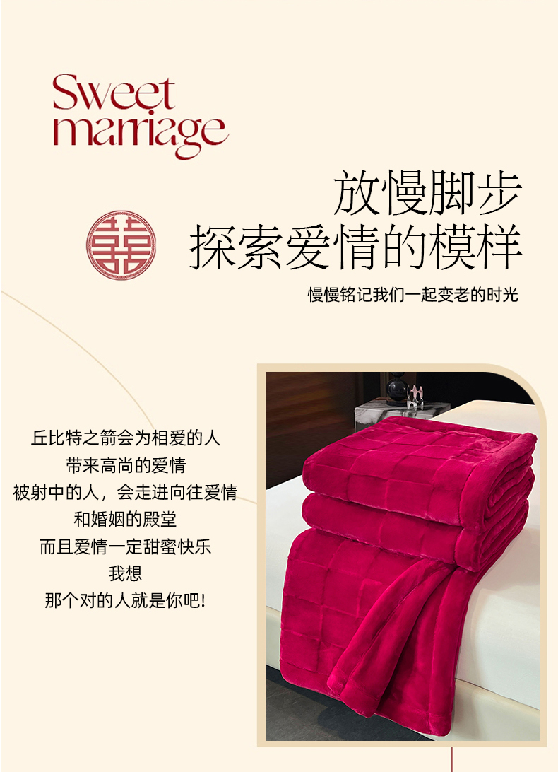 商品名称:凯轩毛毯网销专供 2025新款方格精品婚庆云毯毛毯 方格-玫瑰红