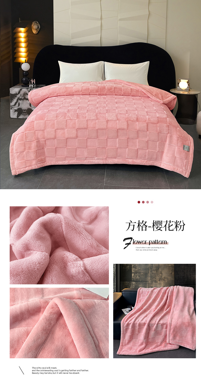 (总)凯轩毛毯网销专供 2026新款仿刺绣双层加厚压花云毯,豆沙红,绛紫色,孔雀绿,奶油咖,珊瑚粉,深灰色