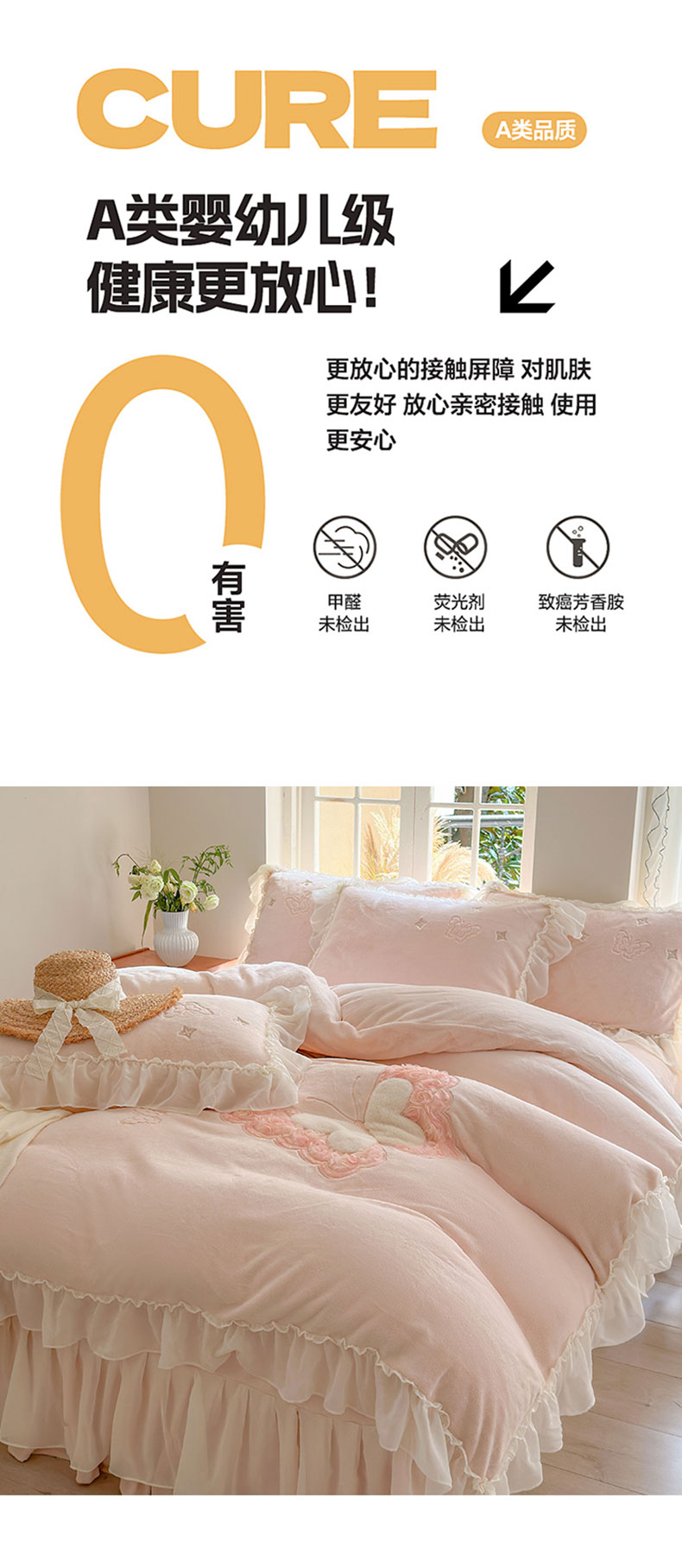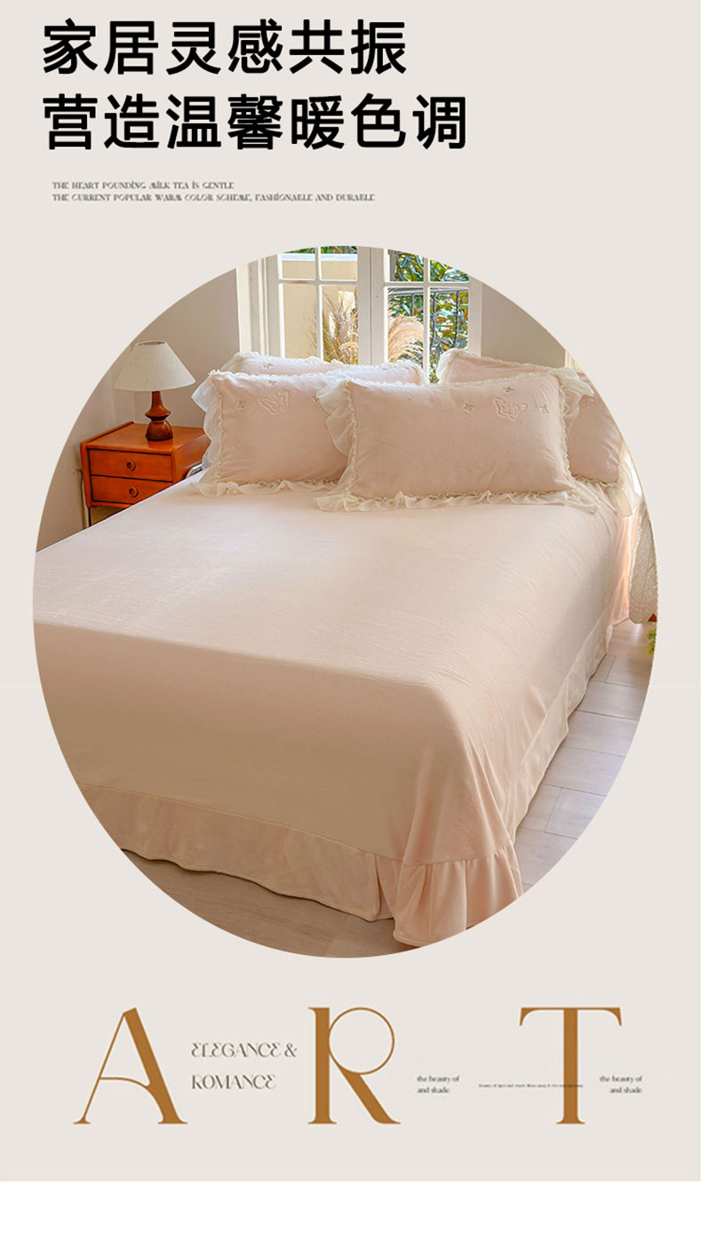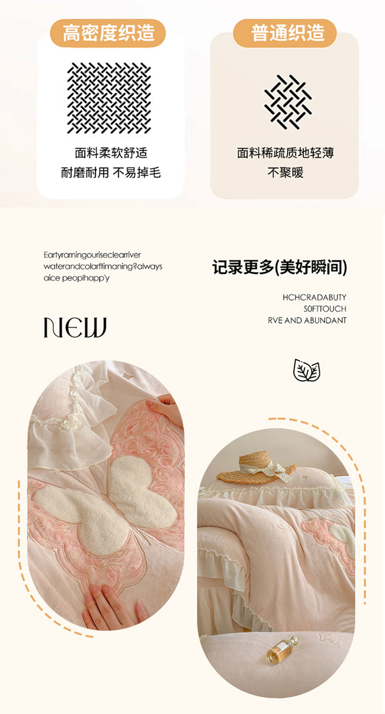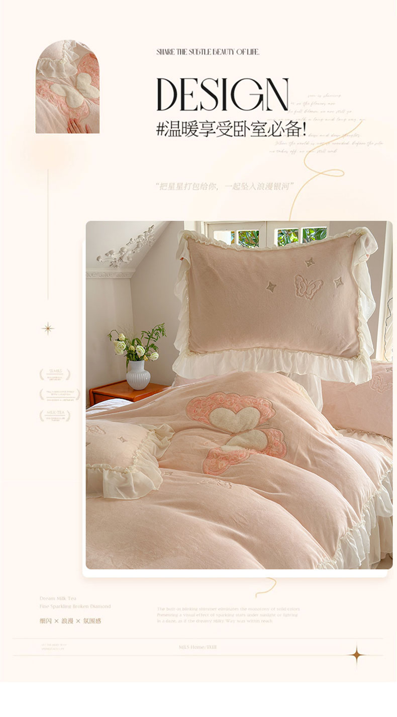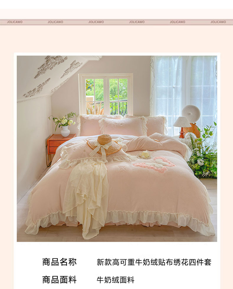 商品名称:美洲琳 2025新款高克重全消光贴布绣花牛奶绒四件套 蝴蝶-浅粉