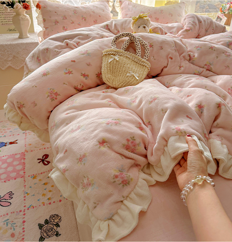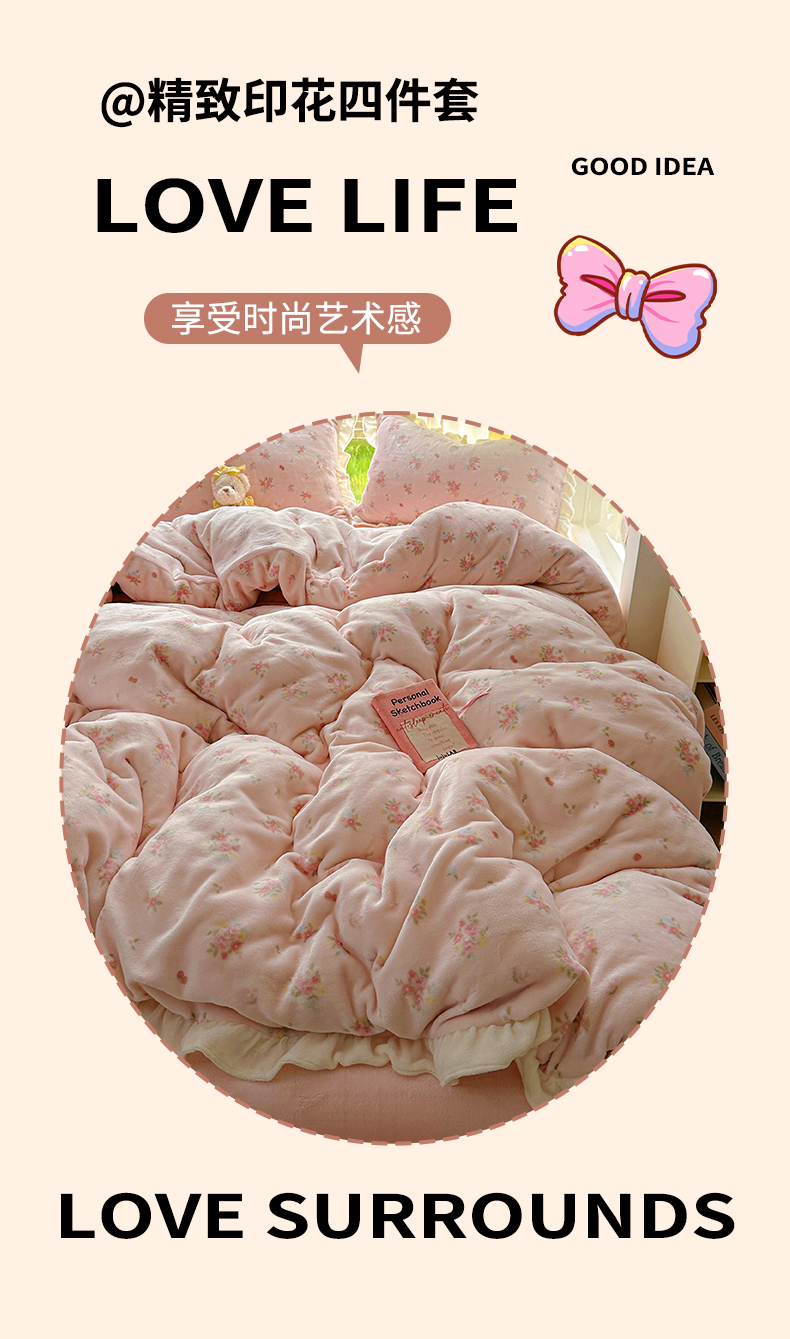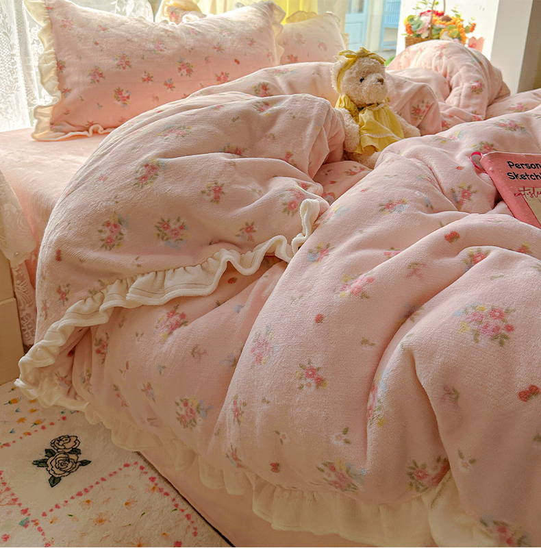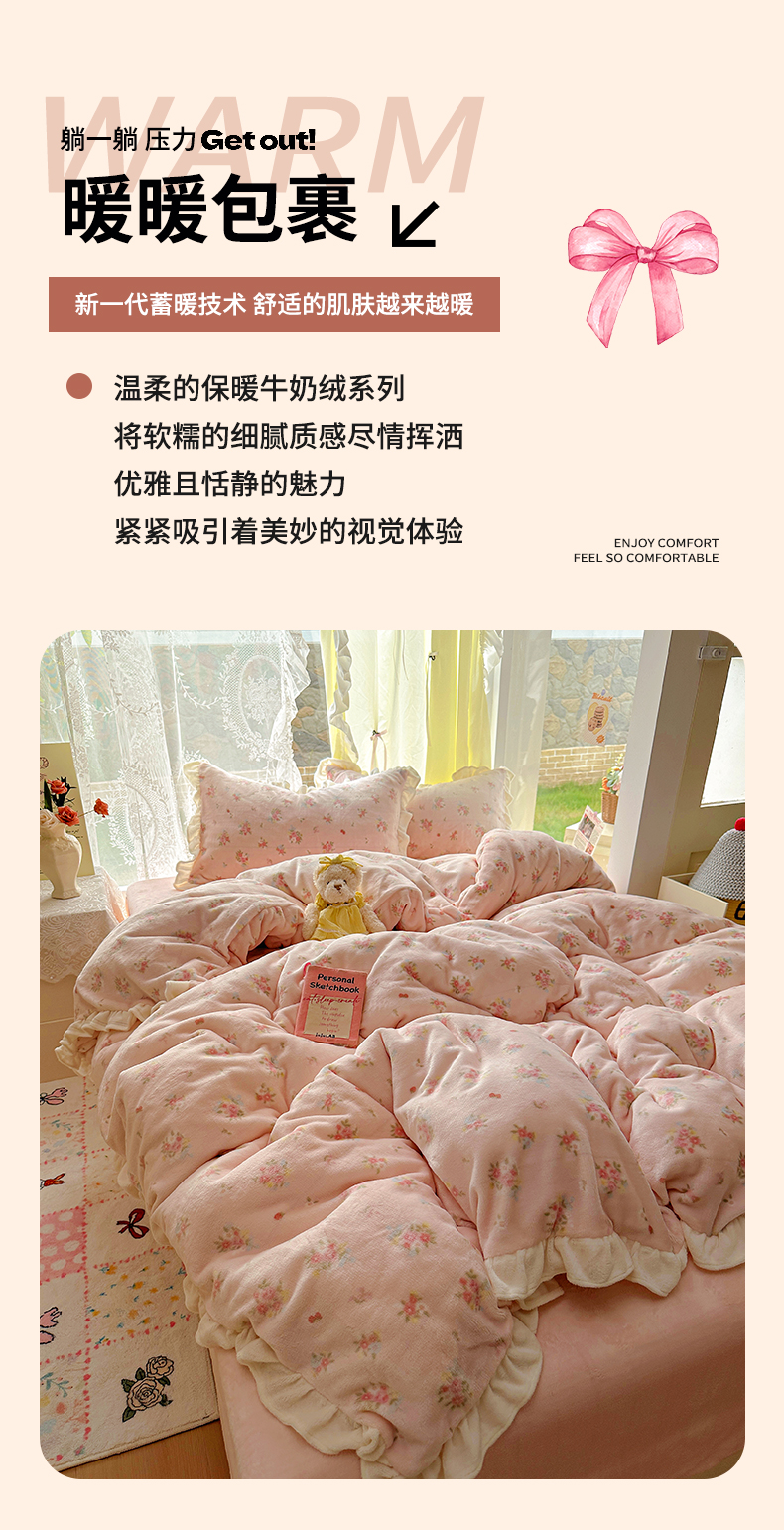 当前位置: 91家纺网 > 商品网购 > 床品套件 > 四件套 > 牛奶绒四件套 > 老K (原美阁) 25年新款A类200克花边款牛奶绒四件套蝴蝶结韩版牛奶绒 粉嘟小花